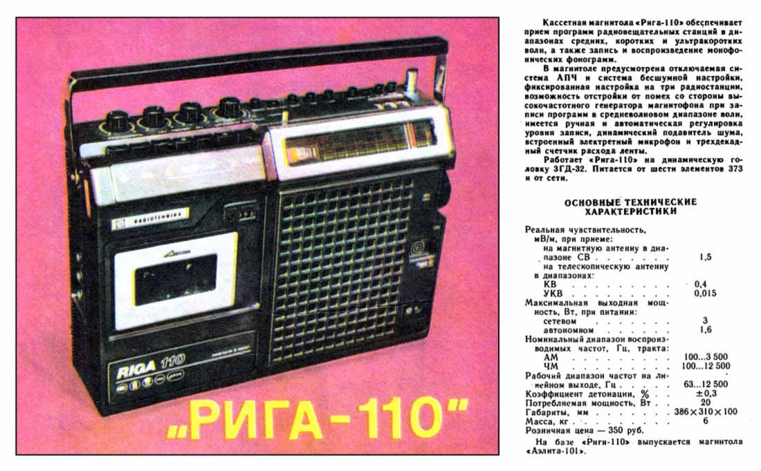 Кассетные магнитолы "Рига-110" и "Aэлита-101"