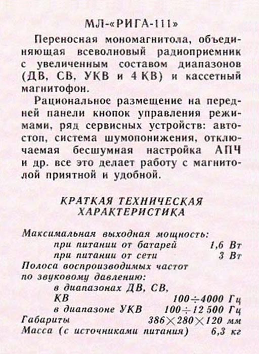 является обновлением модели "Рига-110" и состоит из радиоприёмника, работающего
