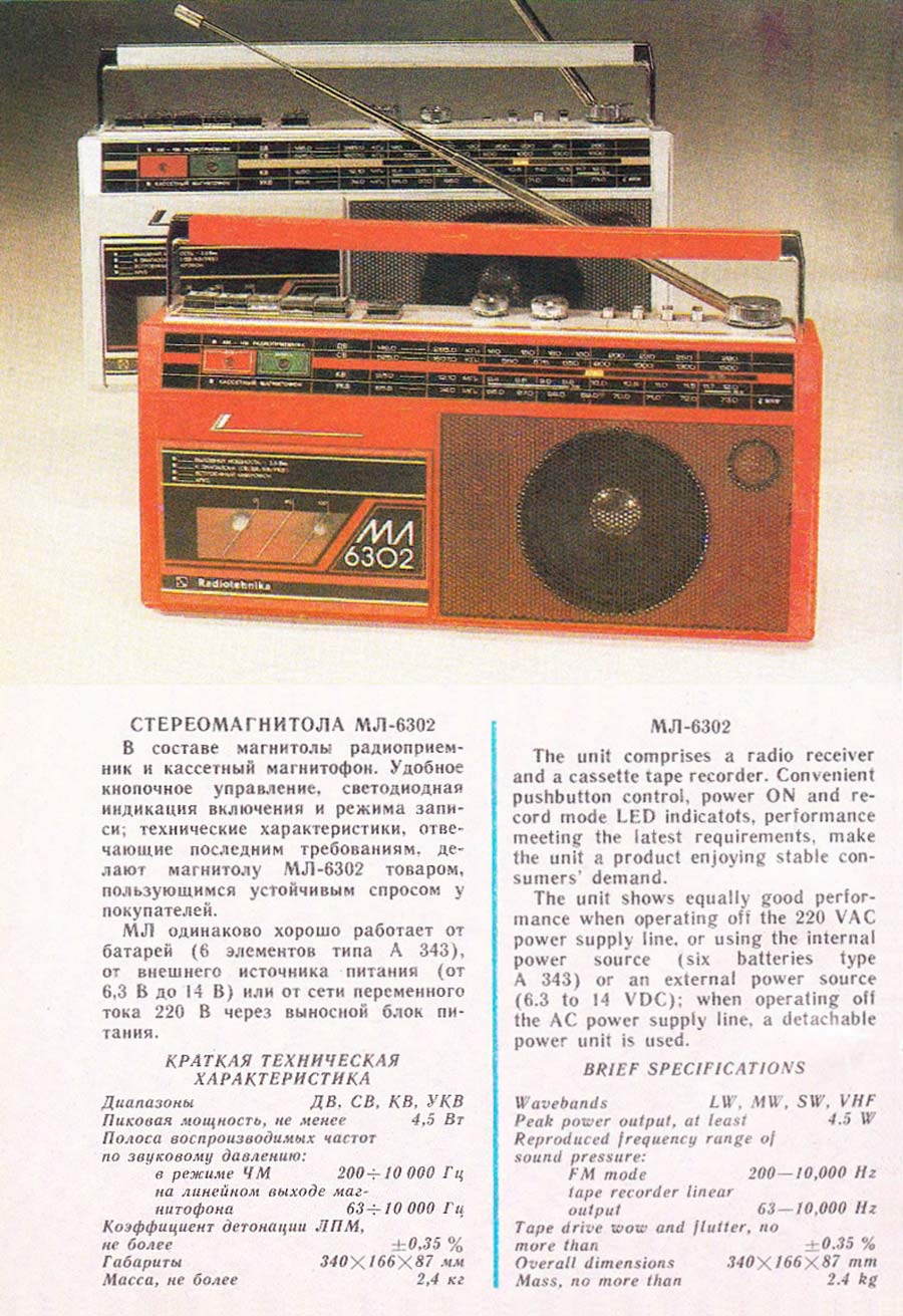 кассетная магнитола "Радиотехника МЛ-6302" с 1988 года выпускалась Рижским