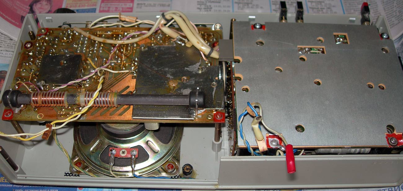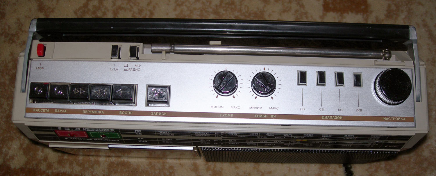 Состоит из приёмника, работающего в диапазонах ДВ, СВ, КВ, УКВ и кассетного