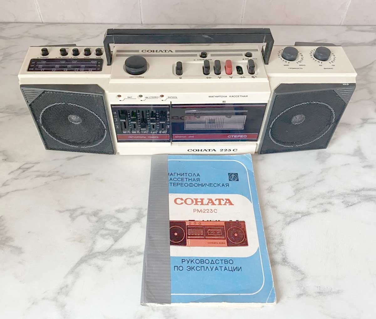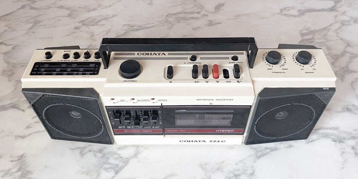 Магнитола повторяет модель "Соната РМ-323-стерео" 1989 года коммерческим
