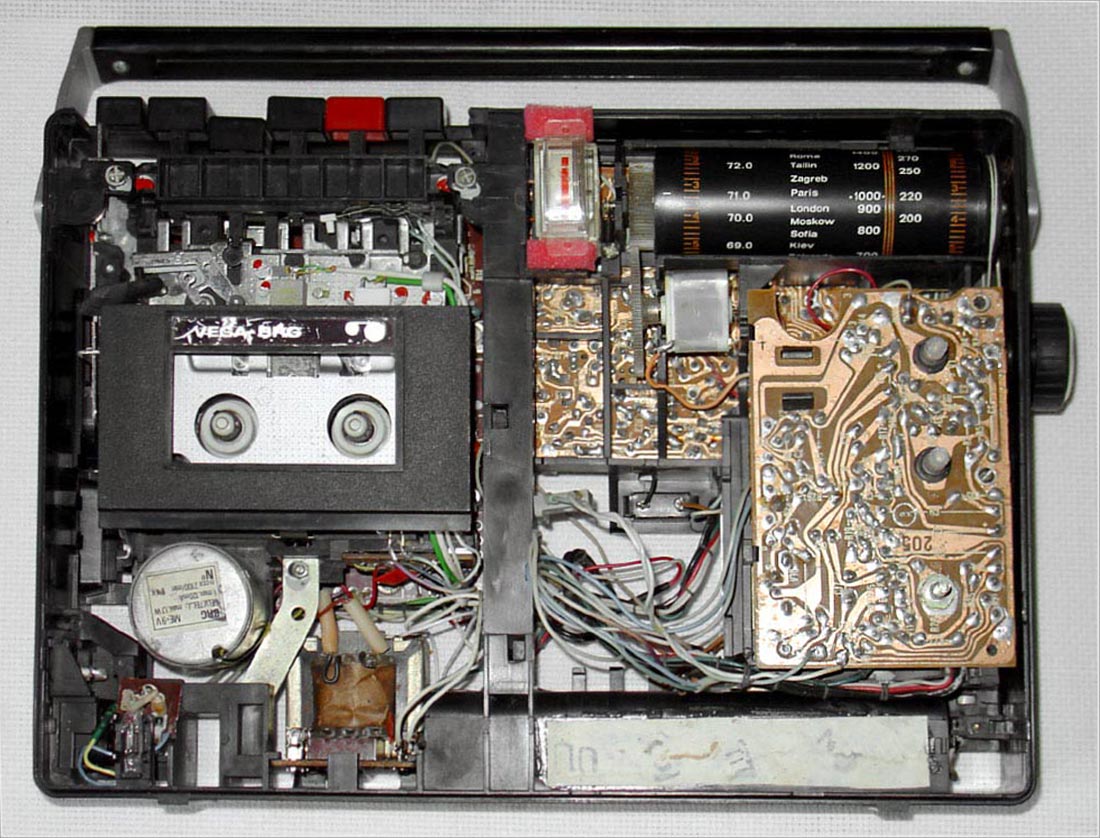 и встроенный электретный микрофон типа МКЭ-3. Питается магнитола от сети