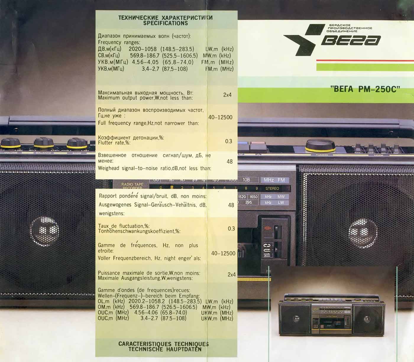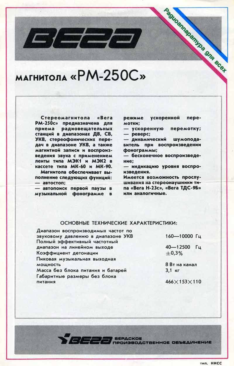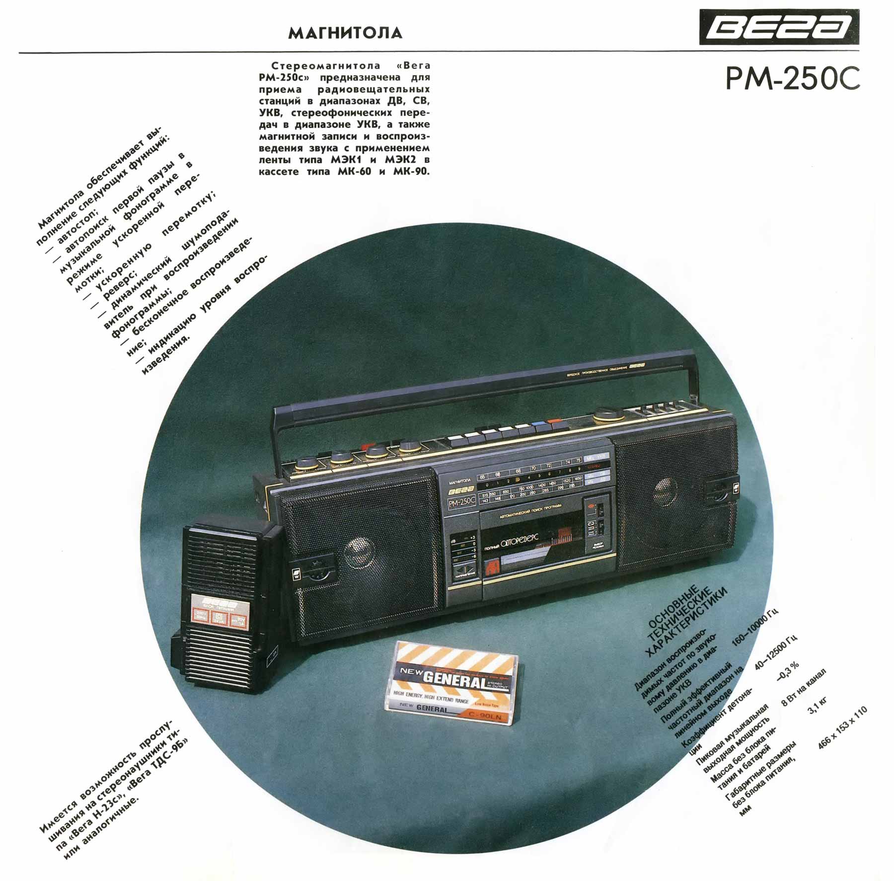 магнитолы "Вега РМ-250С" в журнале Радио № 9 за 1992 год.