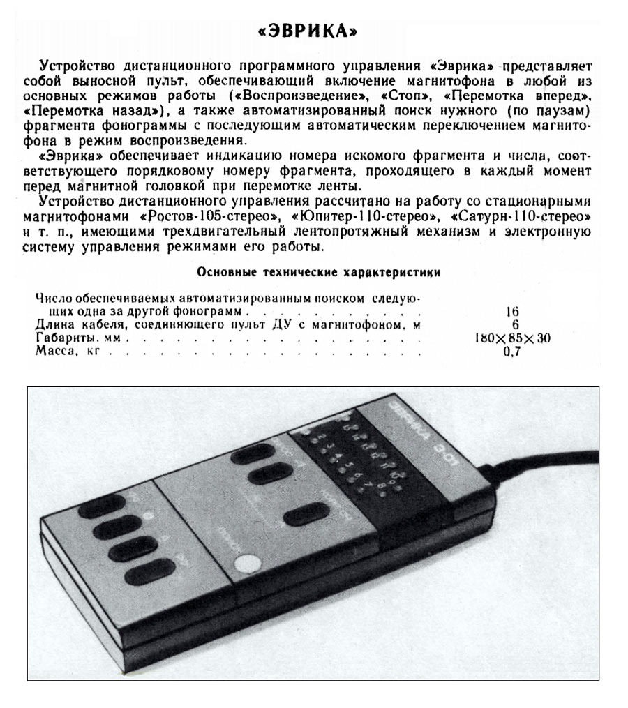 электромеханический завод. ПДУ для управления магнитофонами типа "Ростов",