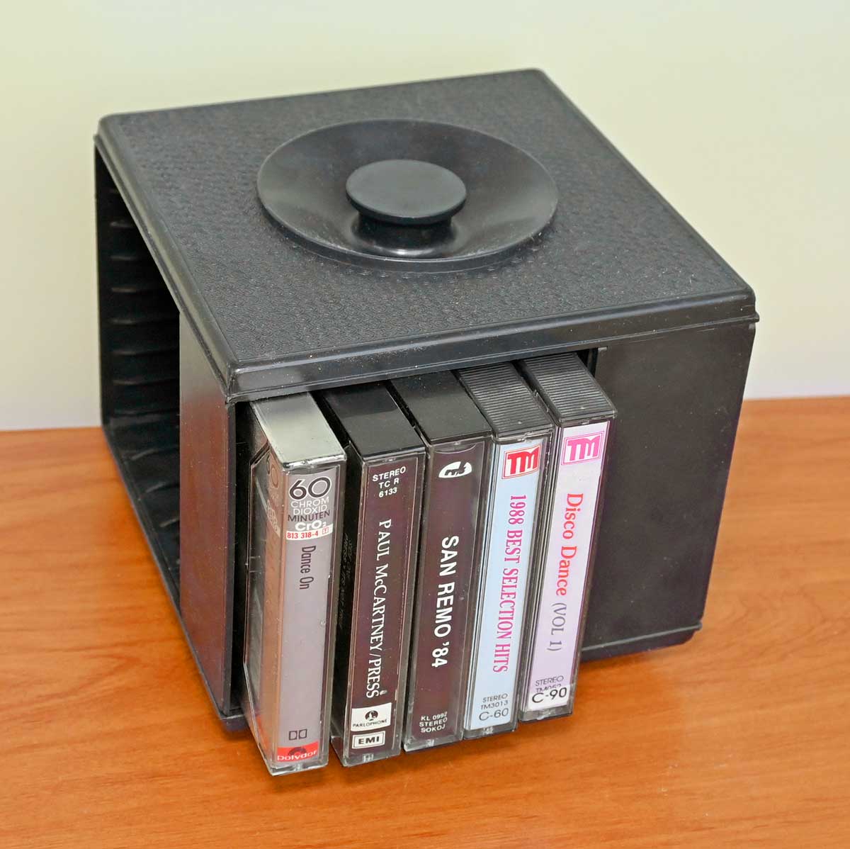 Кассетница для хранения компакт-кассет выпускалась возможно с 1985 года неизвестным предприятием "Лаз" . Фотографии предоставил Вячеслав Булочников, Мытищи.