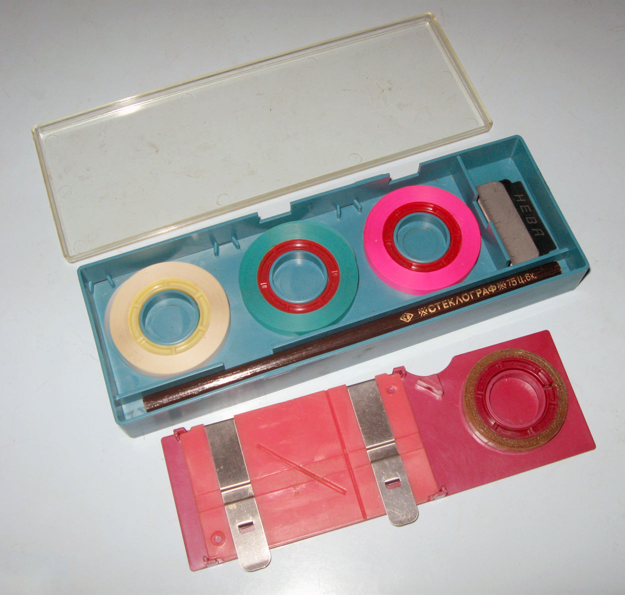 Набор к магнитофону предназначен для подклейки цветных немагнитных, обычно