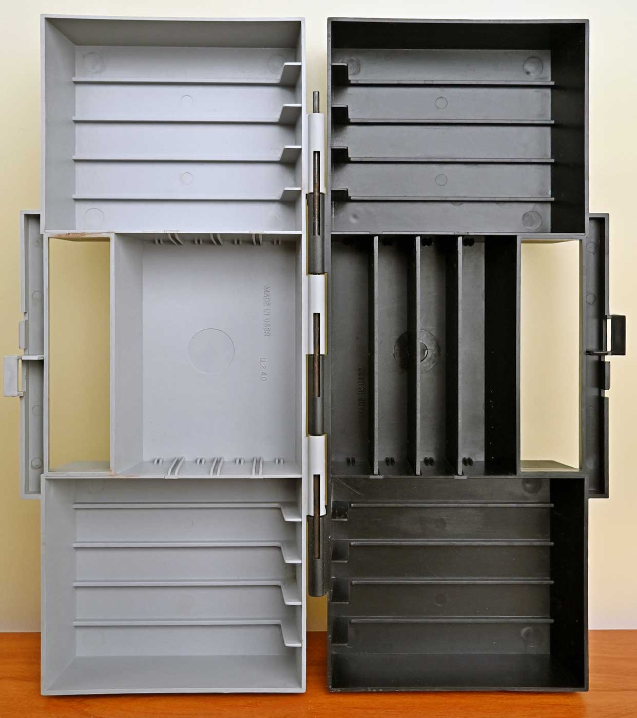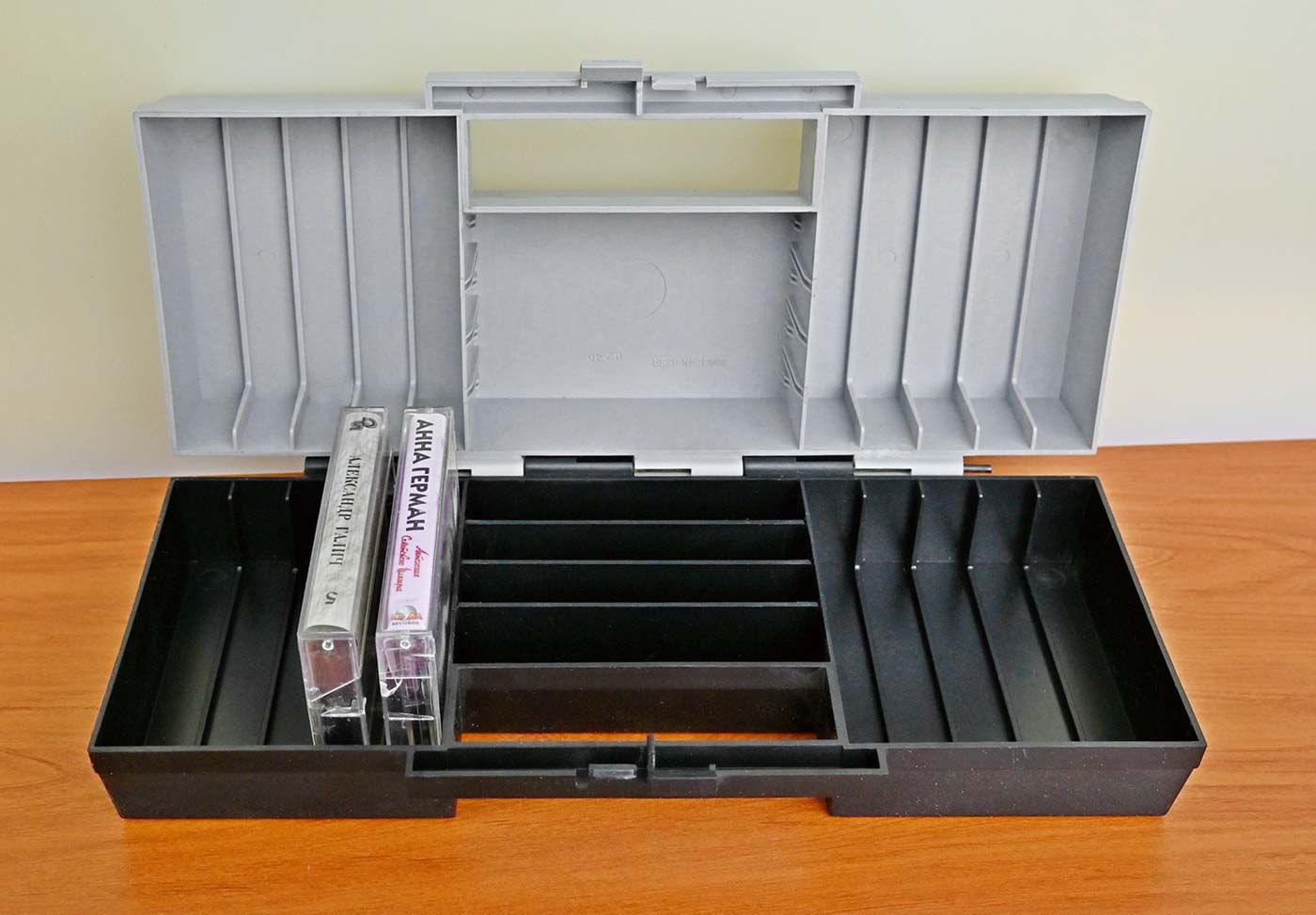 Блок для хранения компакт-кассет предположительно с 1988 года производил завод "Norma" в городе Таллин, ЭССР. Блок способен хранить 14 компакт-кассет. Цена 2руб 40коп.