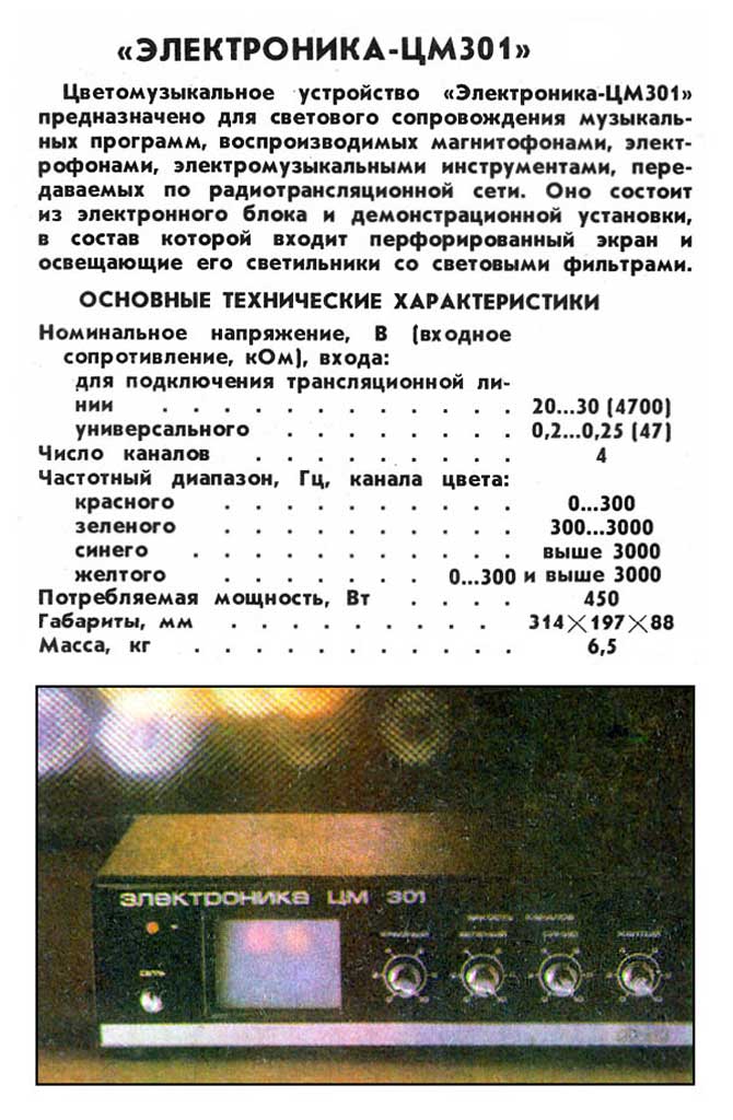 ЦМ-301" выпускалось с 1983 года. Устройство предназначено для светодинамического