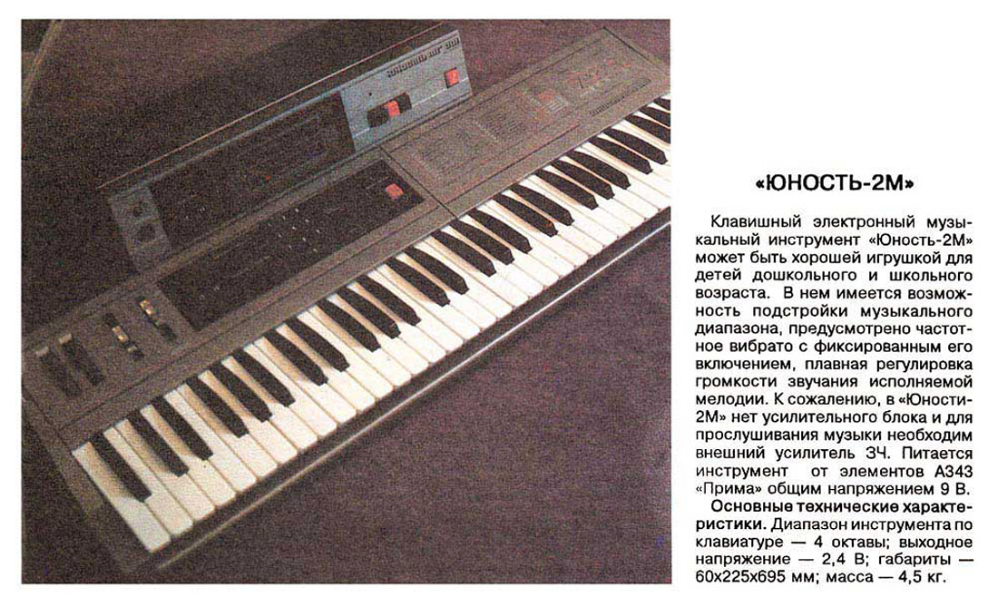 музыкальный инструмент "Юность-2М" выпускался с 1990 года. Клавишный электронный
