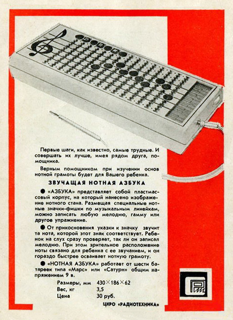 предназначен для изучения основ нотной грамоты детьми. В 1982 году игрушка