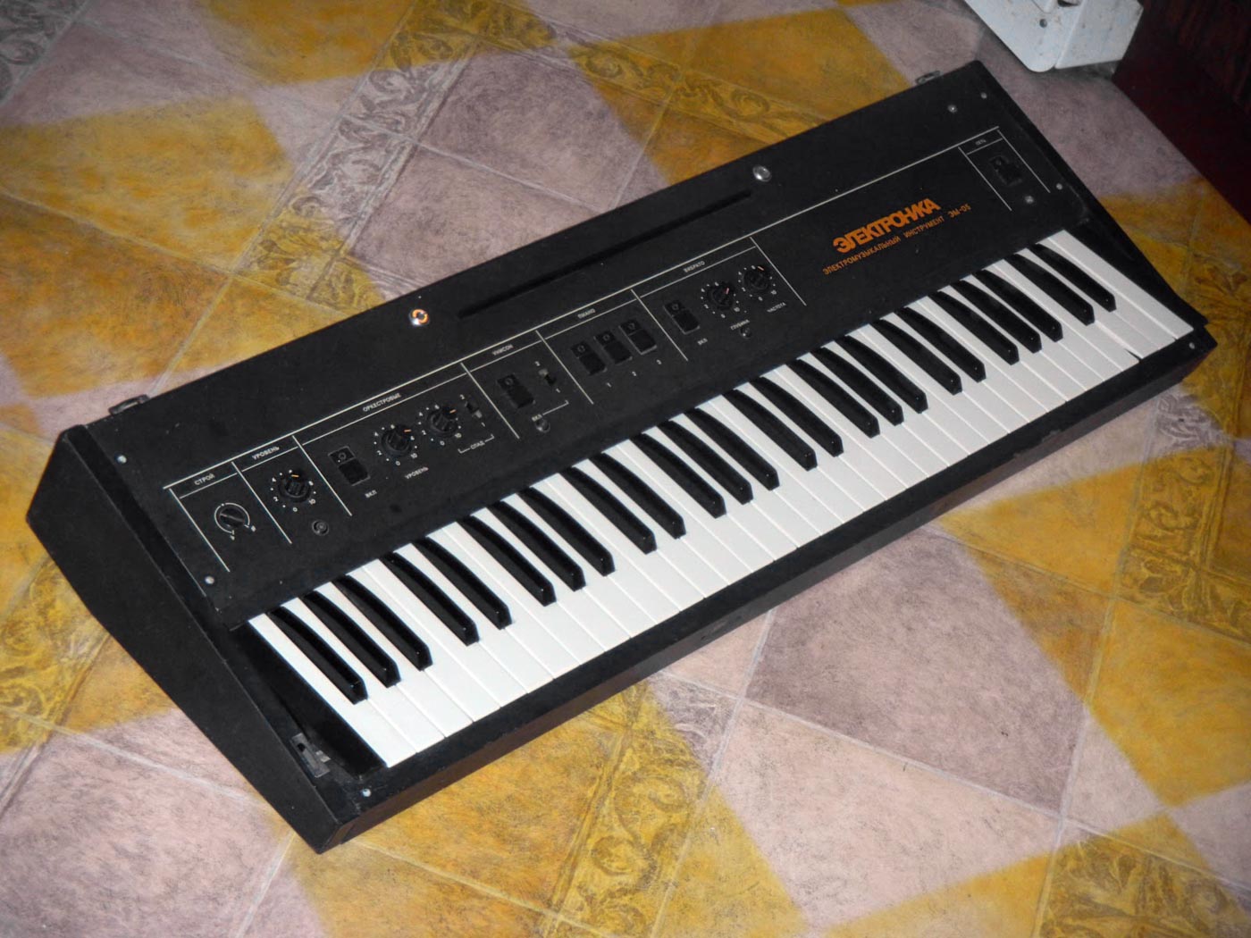 оркестровые и пиано. Клавиатура 5 октав. Корпус ЭМИ металлический, в основном