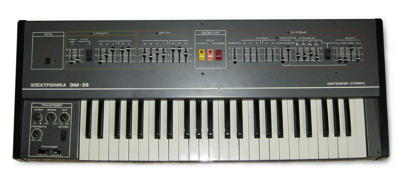 музыкальный инструмент "Электроника ЭМ-25" выпускался с 1985 года. ''Электроника