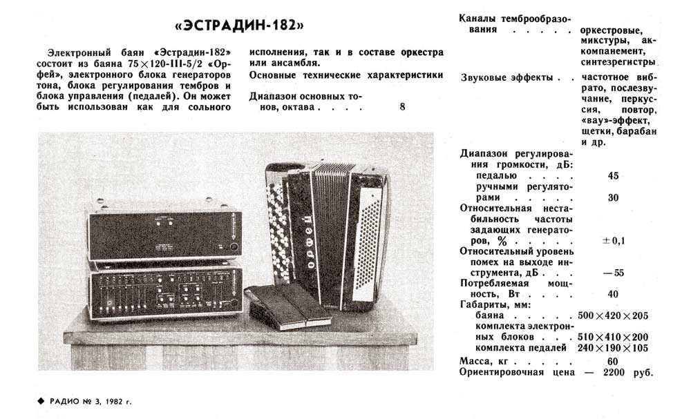 баян "Эстрадин-182" выпускался с 1981 года. Он состоит из баяна 75х120-III-5/2