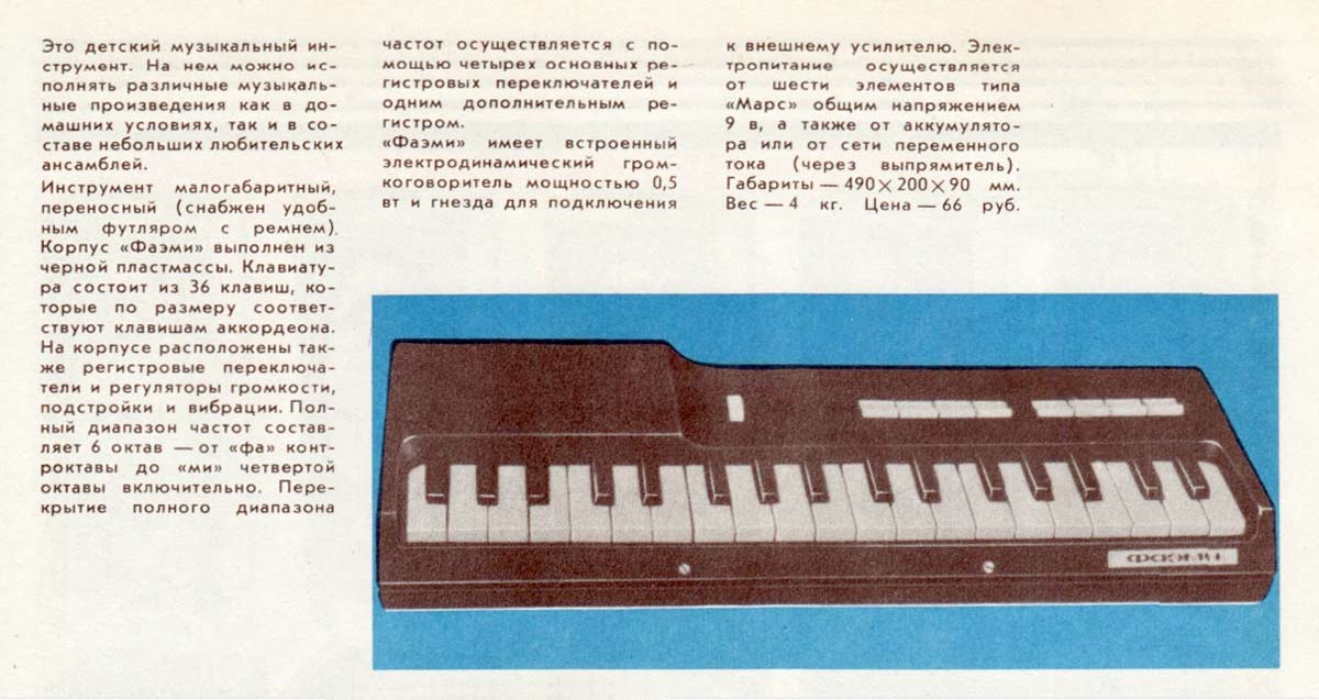 из 36 клавиш и охватывает три октавы. Диапазон основных тонов ЭМИ составляет
