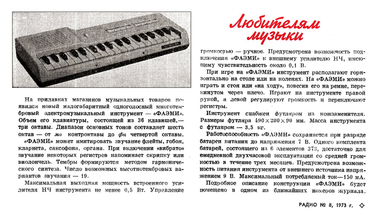 Электромузыкальный инструмент "ФАЭМИ"
