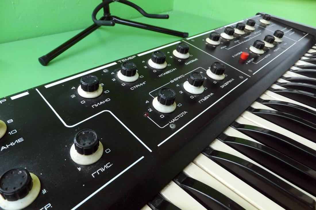 генератор, тембр, вибрато, фильтр, усилитель. Ручки контроля: секция ГЕНЕРАТОР: