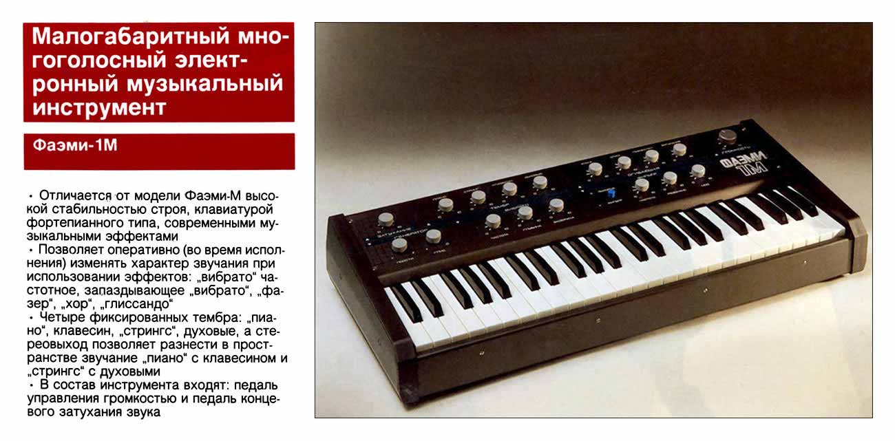 "Фаэми-1М" с 1983 года выпускал Качканарский радиозавод. Синтезатор имеет
