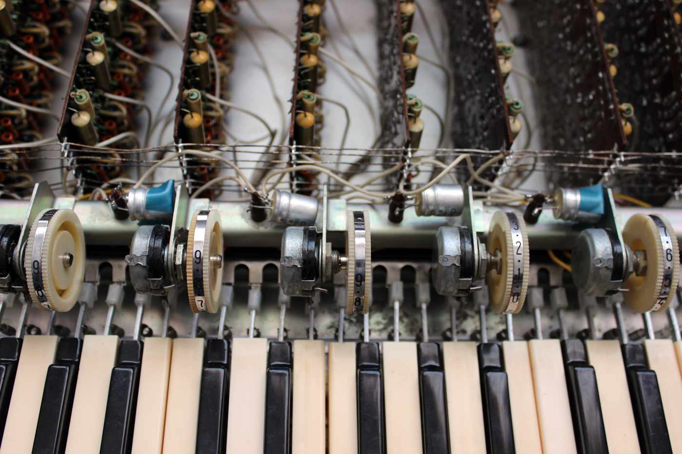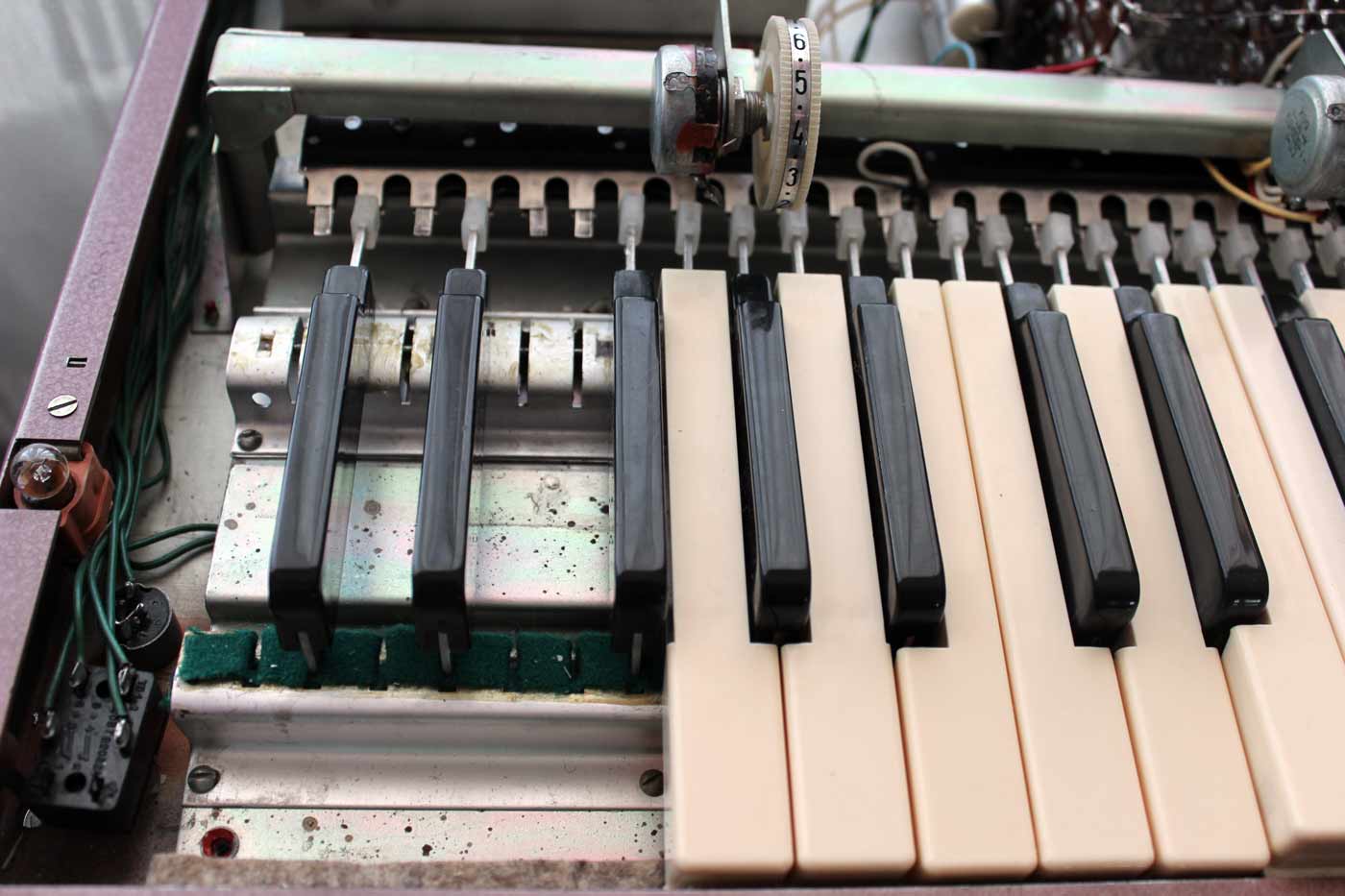 съёмная планка, открывающая доступ к ручкам настройки генераторов. Клавиатура