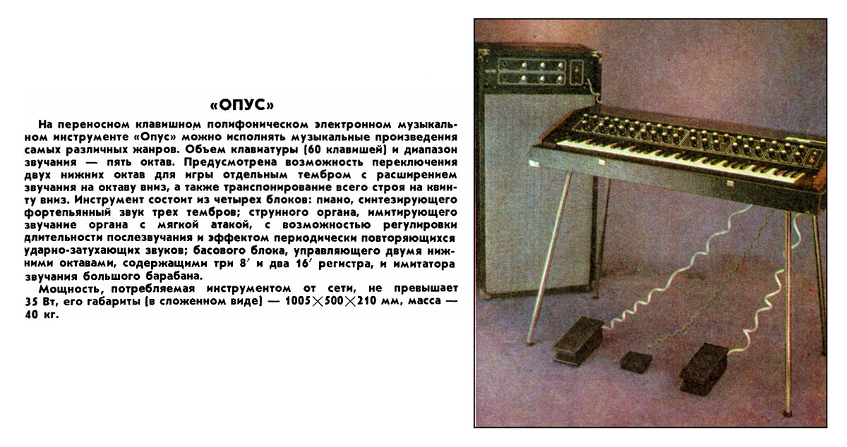 инструментов. На переносном клавишном полифоническом ЭМИ "Опус" можно исполнять
