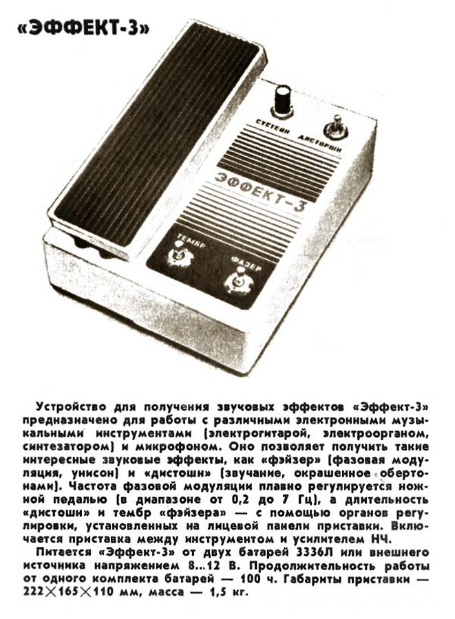 звуковых эффектов "Эффект-3" выпускалась с 1984 года. Устройство для получения