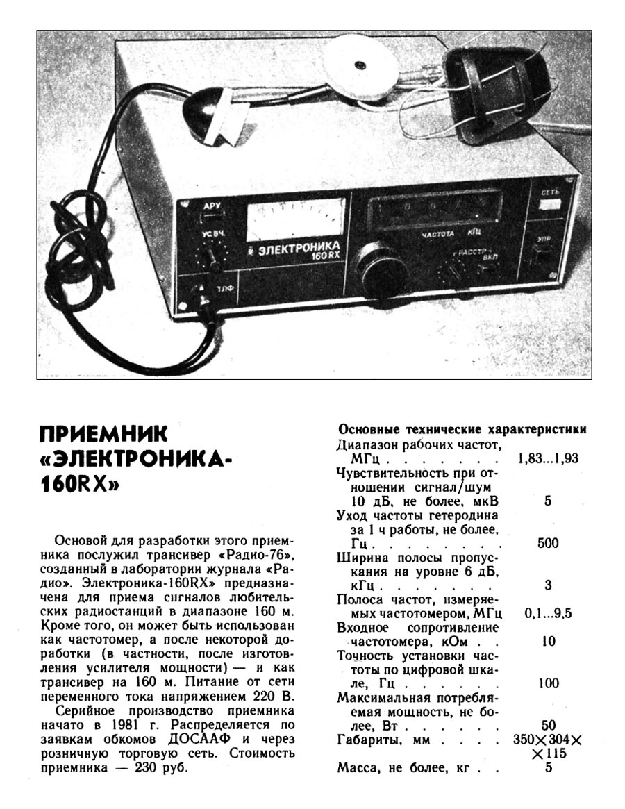 созданный в лаборатории журнала "Радио". Радиоприёмник ''Электроника-160