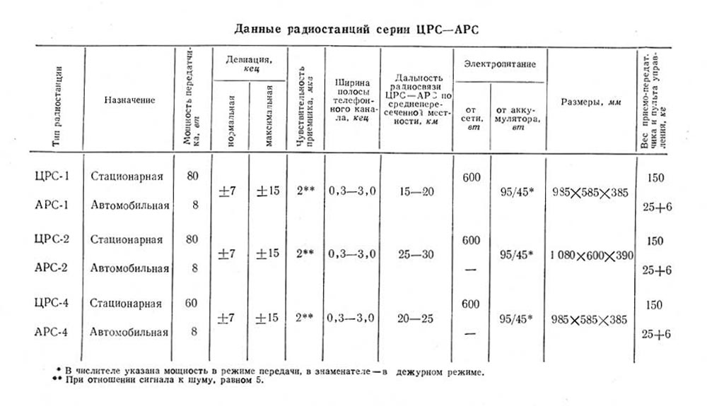1962 года Воронежским радиозаводом. АРС абонентская радиостанция, ЦРС -