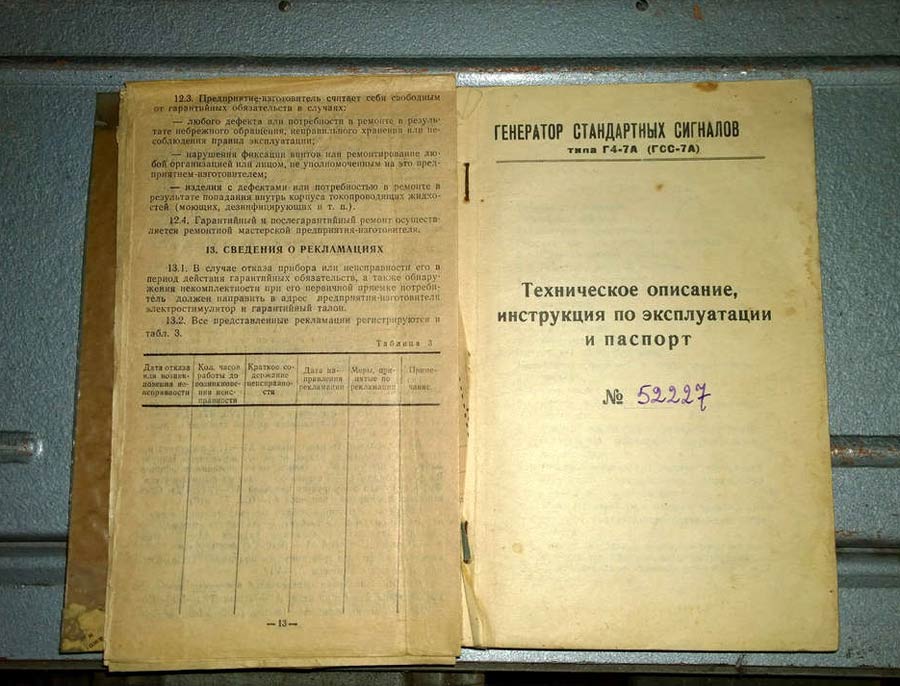 Генератор стандартных сигналов "Г4-7а" (ГСС-7а) выпускался возможно с 1960 года. лужит для проверки и настройки радиоприёмной аппаратуры в диапазоне 20...180 МГц, перекрываемого 5 поддиапазонами.