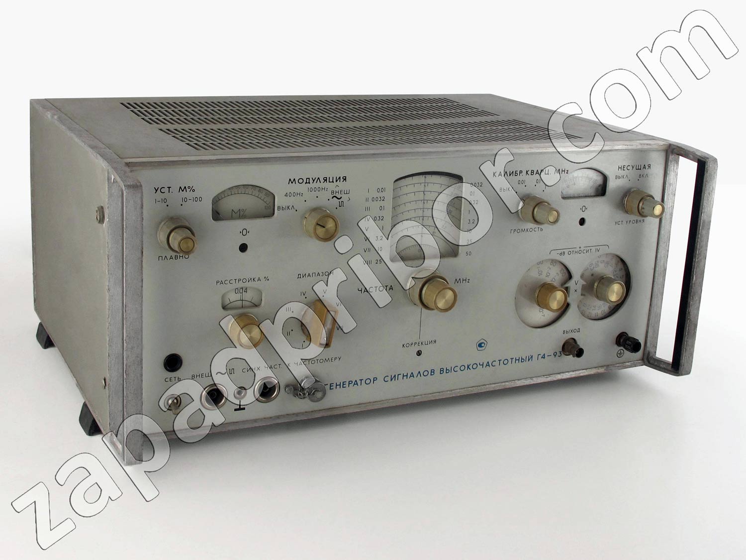 Генератор сигналов "Г4-93" выпускался с 1972 года. Предназначен для контроля, проверки и настройки разной приёмо-передающей аппаратуры работающей в диапазоне от 30 КГц до 40 МГц (реально от 100 КГц д 50 МГц.