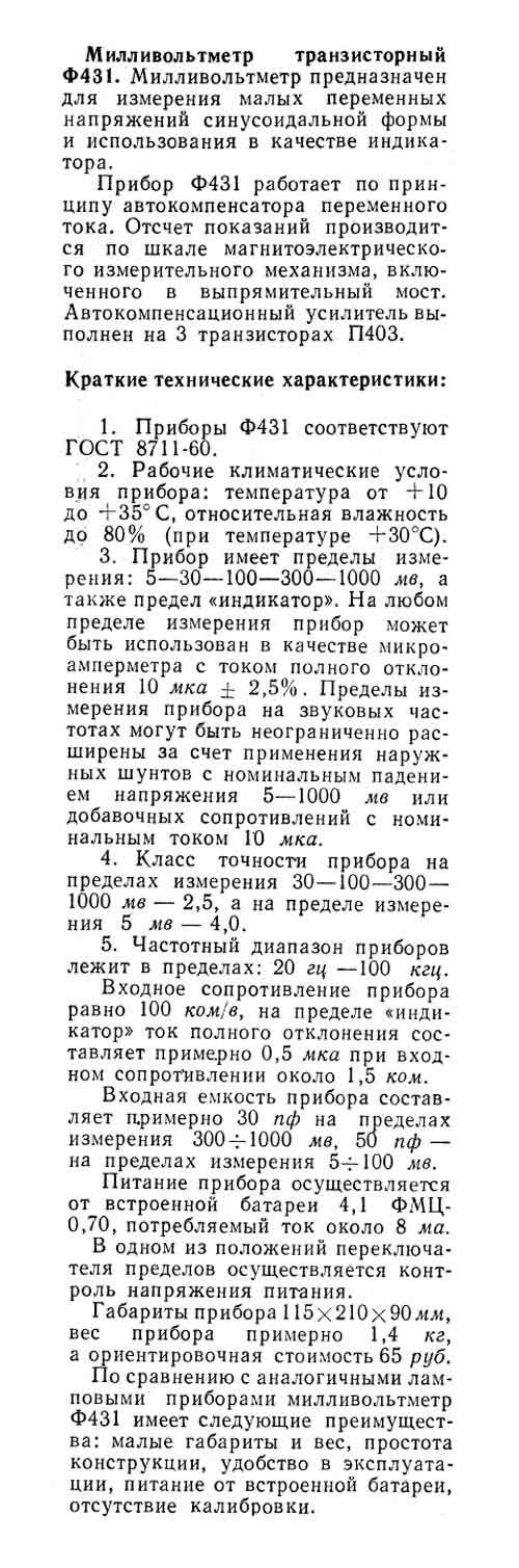 Информация о приборе из журнала "Радио" № 10 за 1963 год.