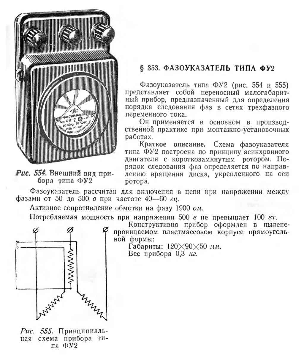 предназначен для определения порядка следования фаз в сетях трёхфазного