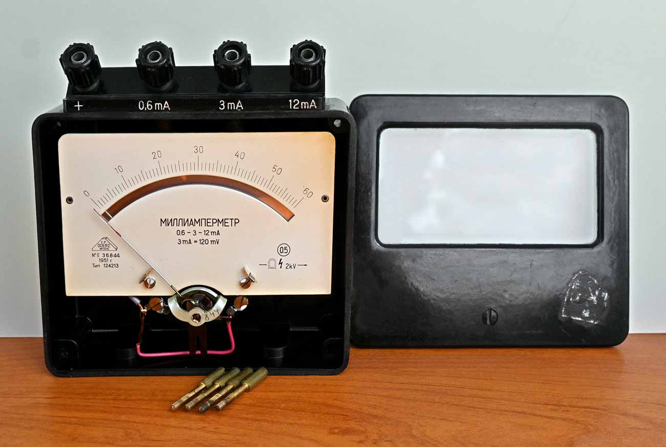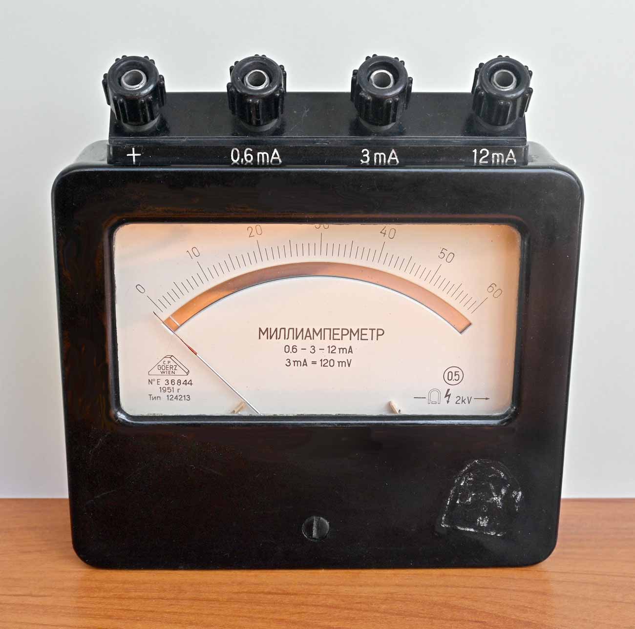 корпусе с зеркальной шкалой. Пределы измерений: 0.6 / 3 / 12 mА. Класс