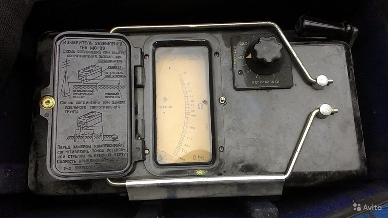 прибором измеритель заземления "МС-08" на пределе шкалы 1000 Ом. В приборе