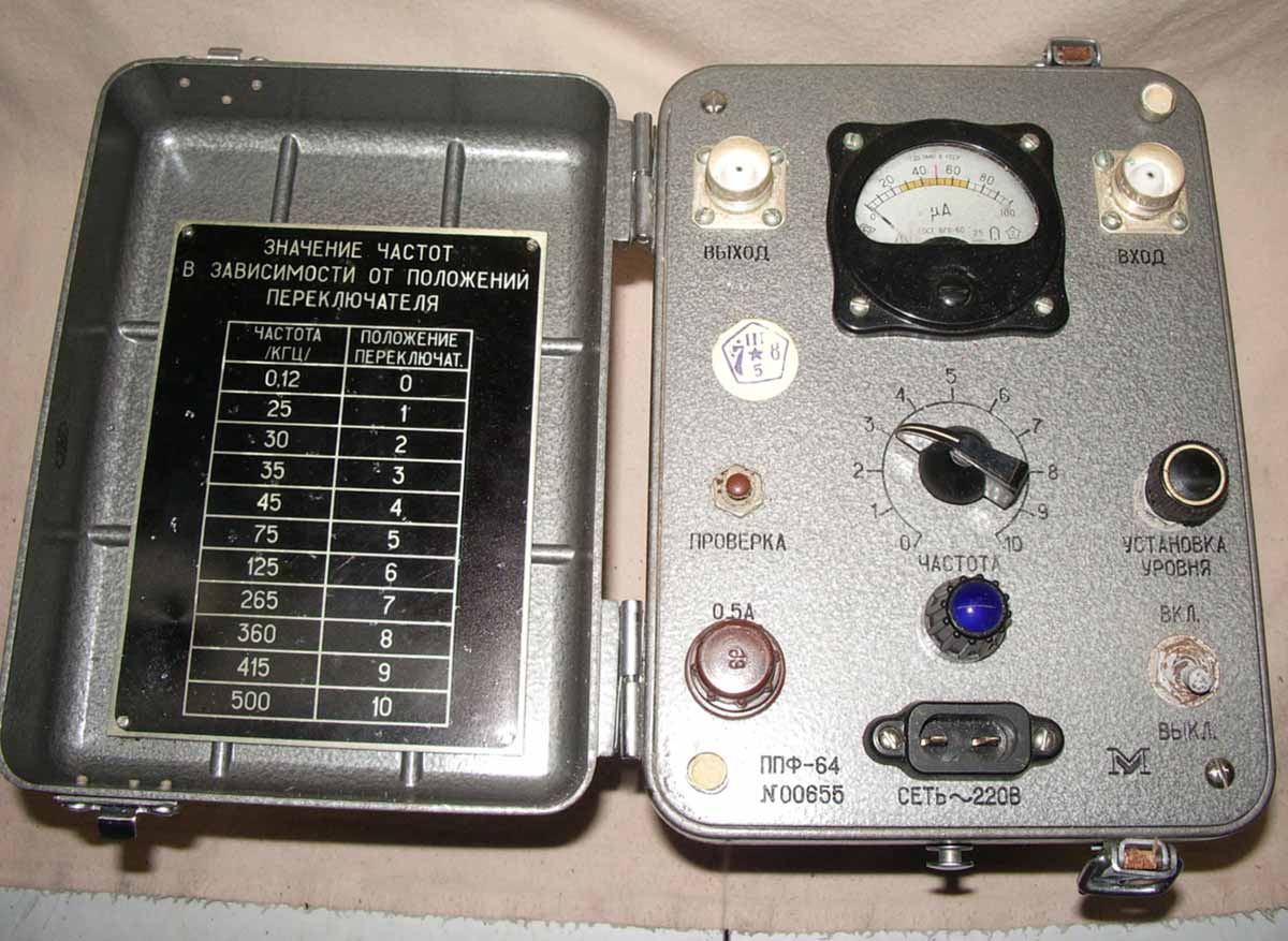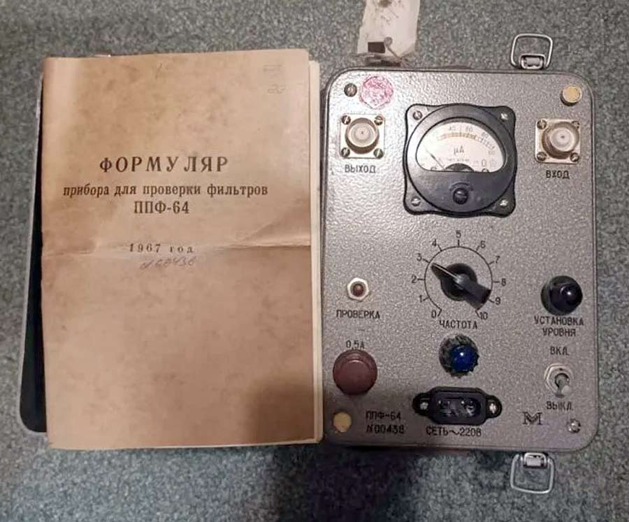 Прибор для проверки фильтров "ППФ-64" производился предположительно с осени 1967 года Уманским заводом "Мегоометр". Прибор предназначен для проверки и настройки фильтров с частотами до 500 кГц.
