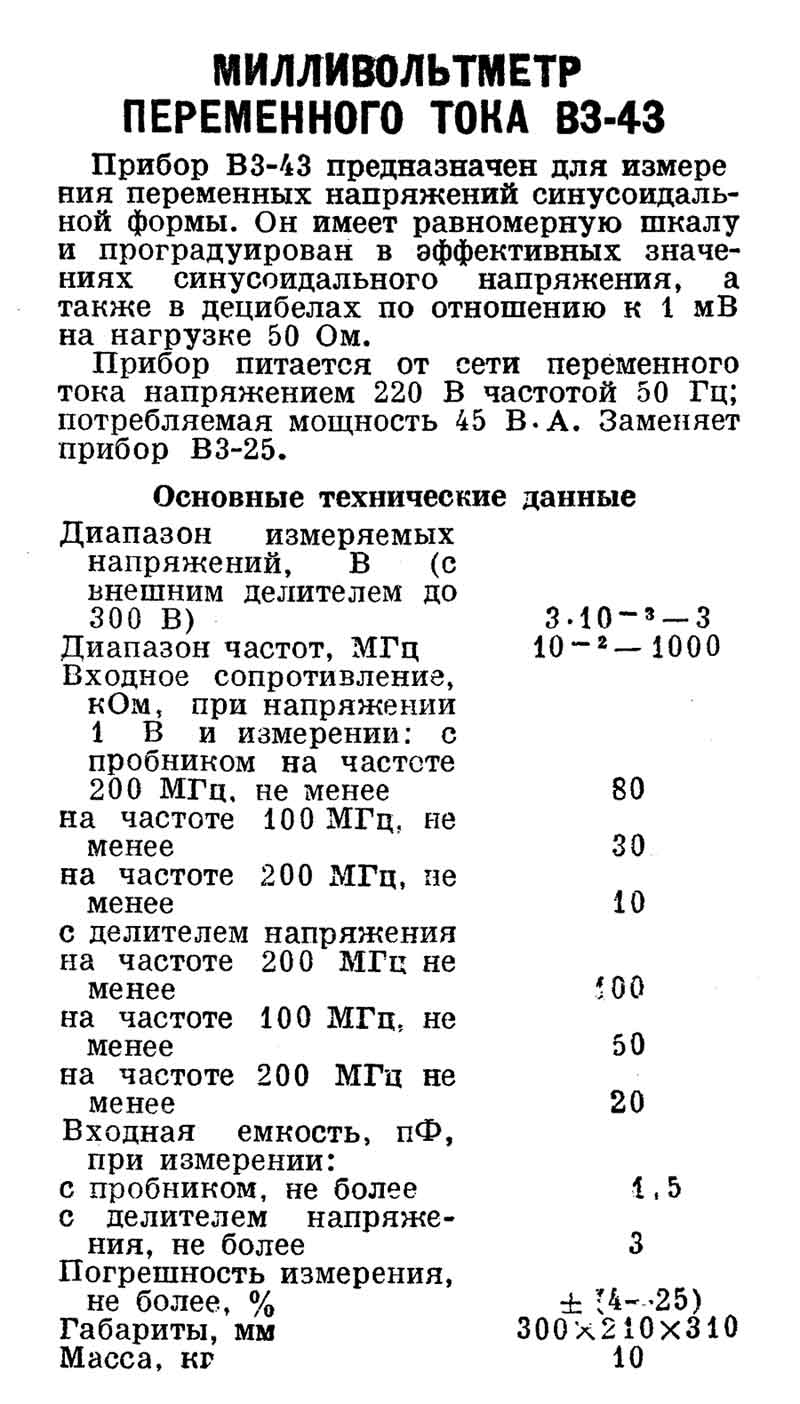 МВ служит для измерения напряжения переменного тока от 3 мВ до 3 В в области
