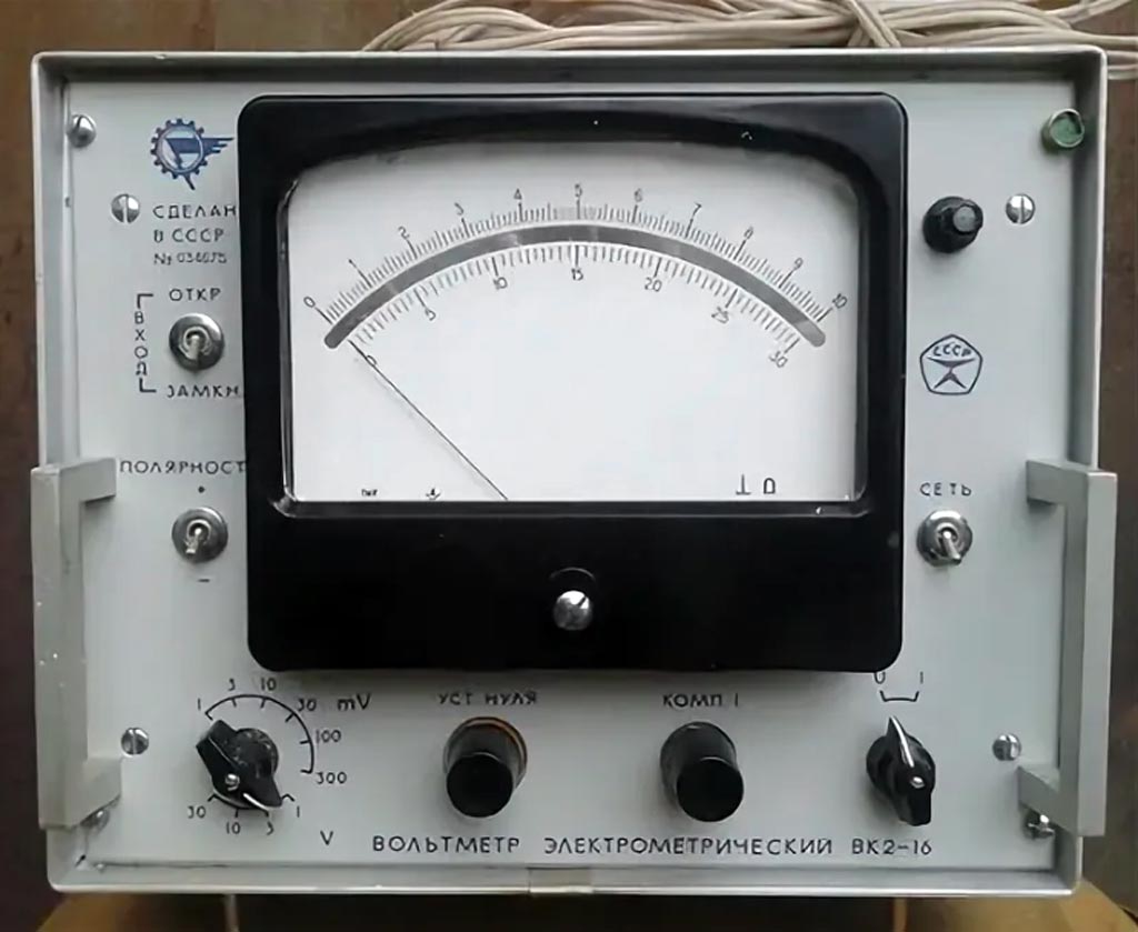 Вольтметр электрометрический "ВК2-16" выпускался возможно с 1974 года. Служит для измерения постоянных напряжений, токов и зарядов. Более подробное описание в выпуске Госстандарта.