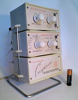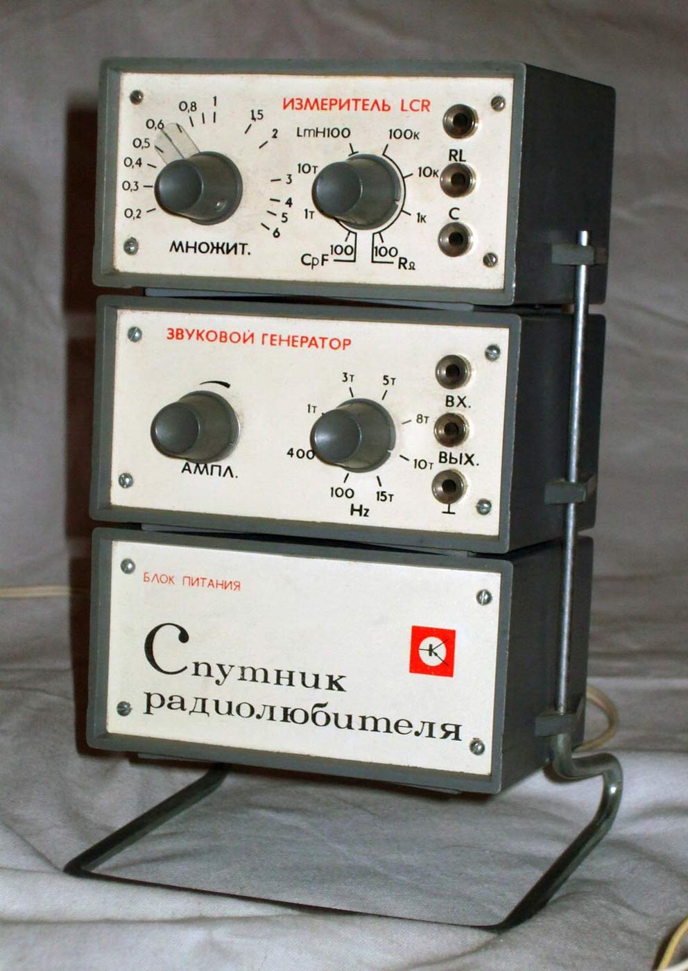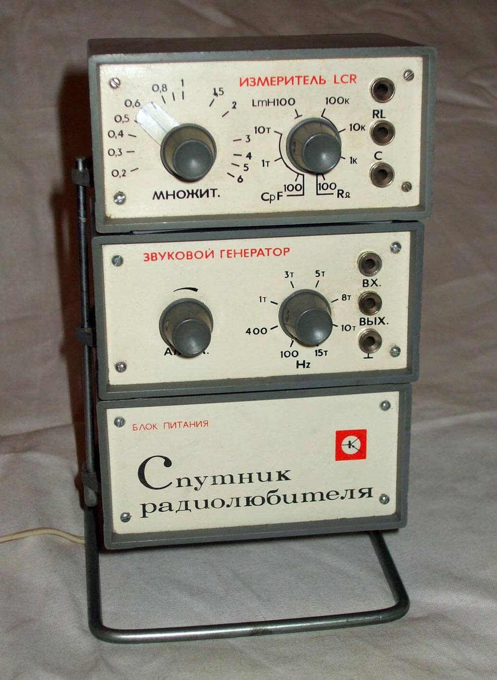 В комплект входит 3 блока, это звуковой генератор, измеритель RCL и блок