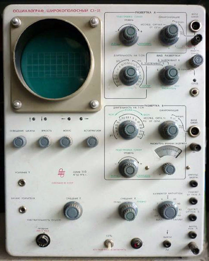 Лабораторный осциллограф универсальный широкополосный "С1-31" выпускался с 1964 года. Предназначен для исследования формы электрических процессов визуальным способом или фотографированием.