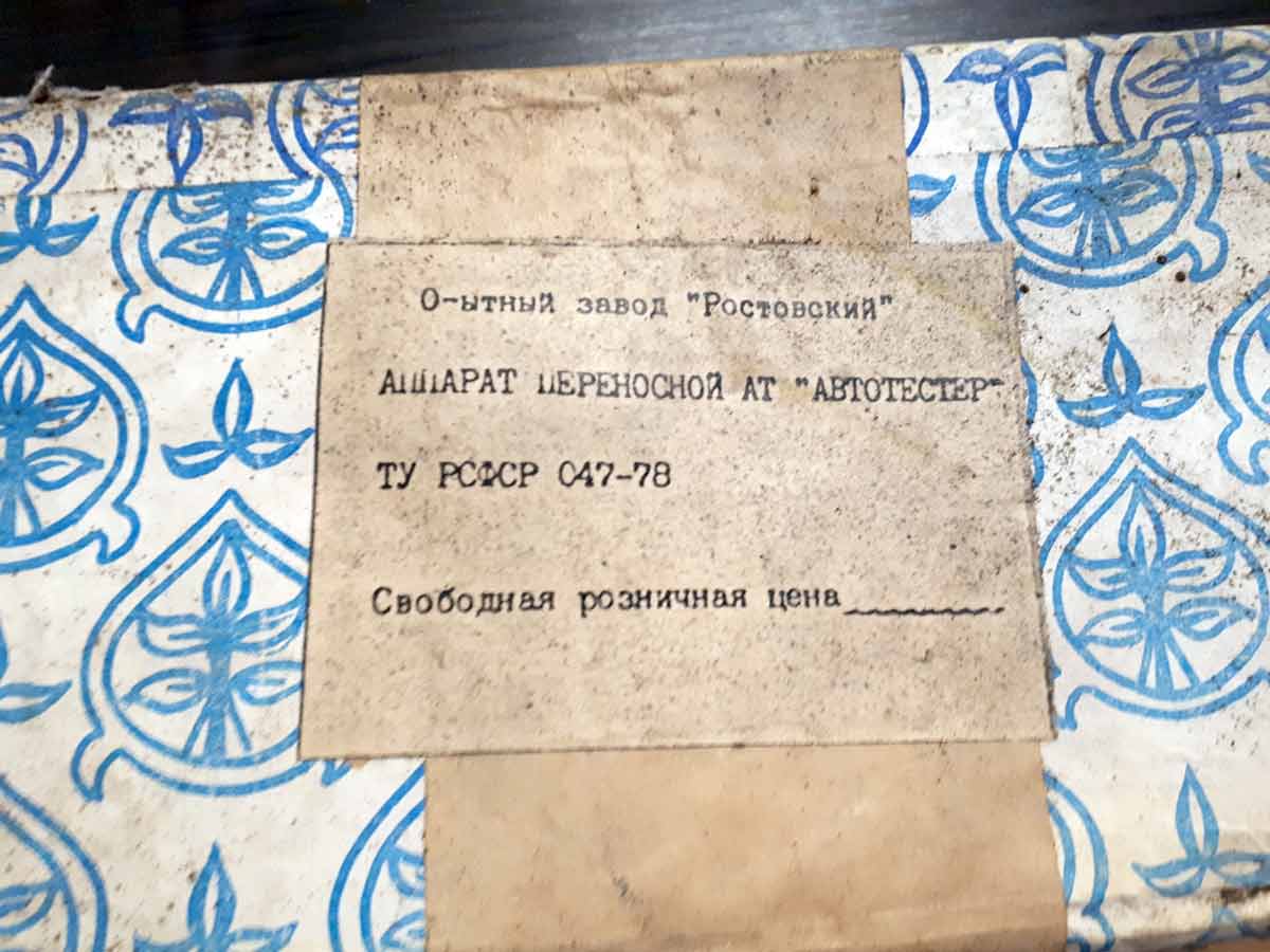 Аппарат переносной "Автотестер АТ" с 1975 года выпускал Опытный завод "Ростовский". Служит для контроля электрооборудования автомобилей.
