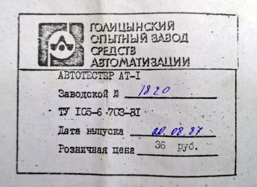 средств автоматизации. Автотестер "АТ-1" предназначен для периодического