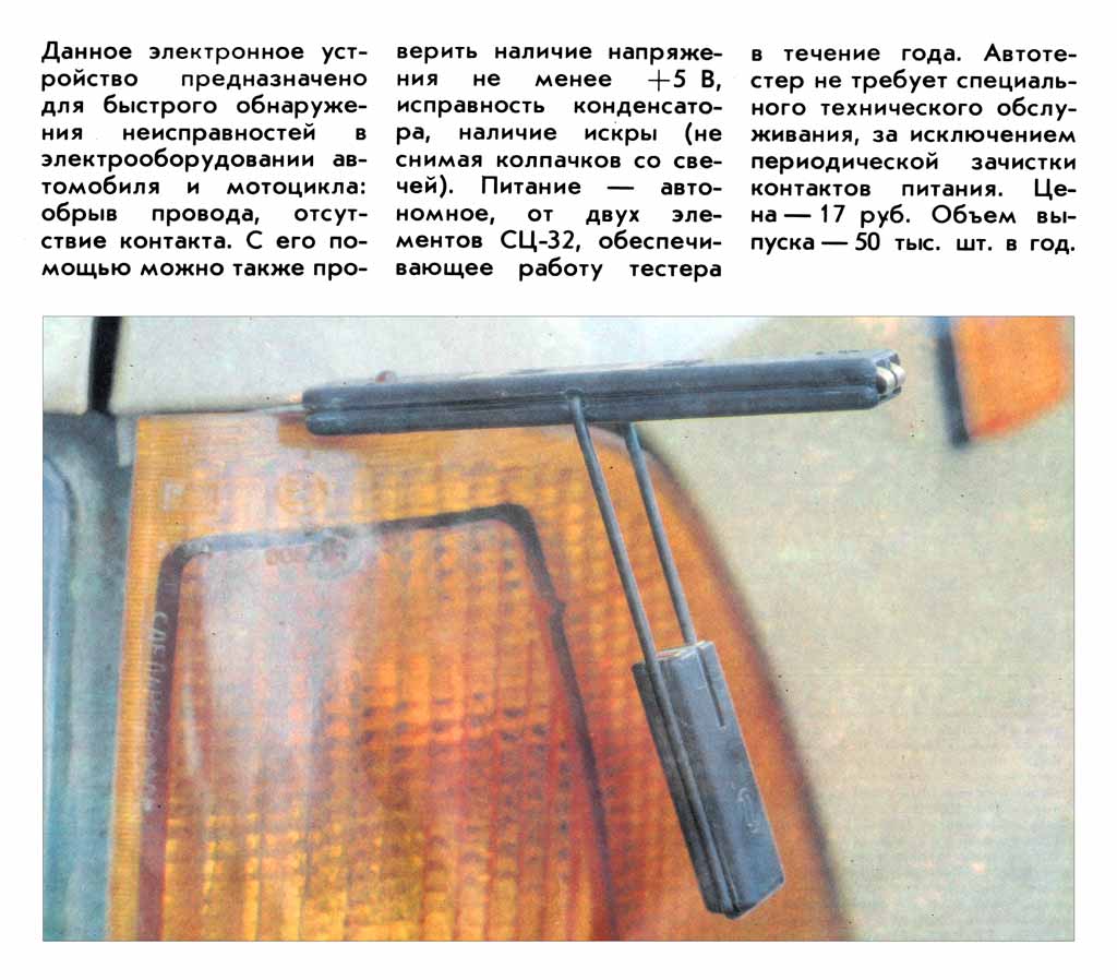 Автотестер выпускался с 1990 года. Служит для проверки электрооборудования автомобиля.