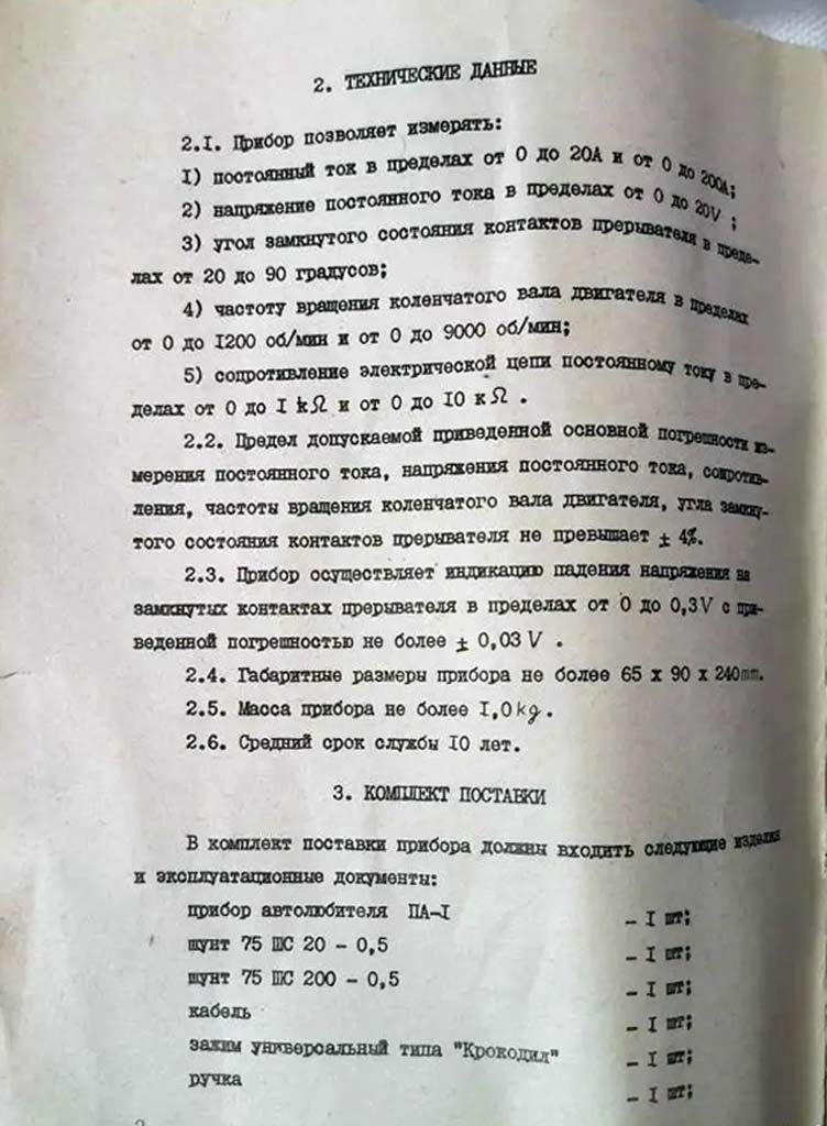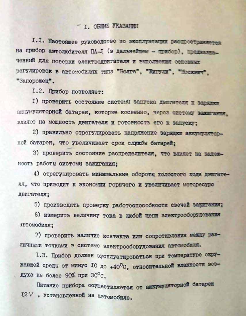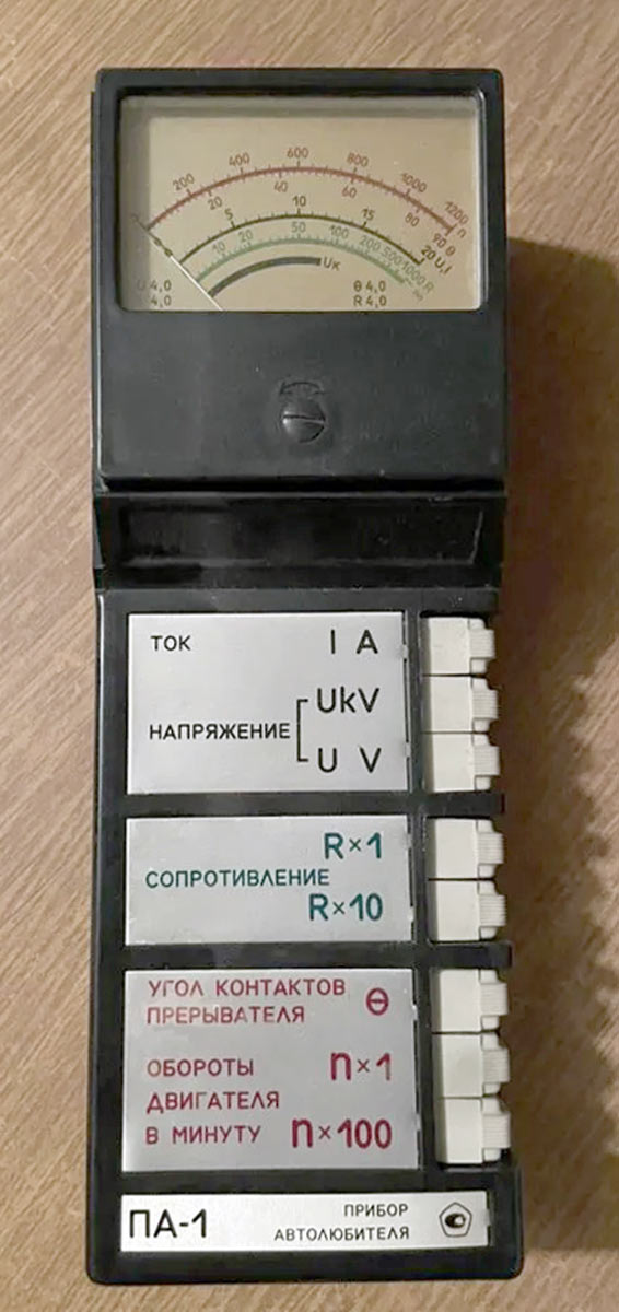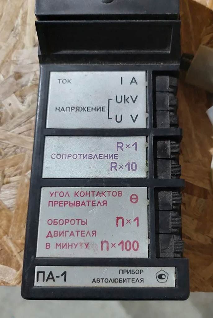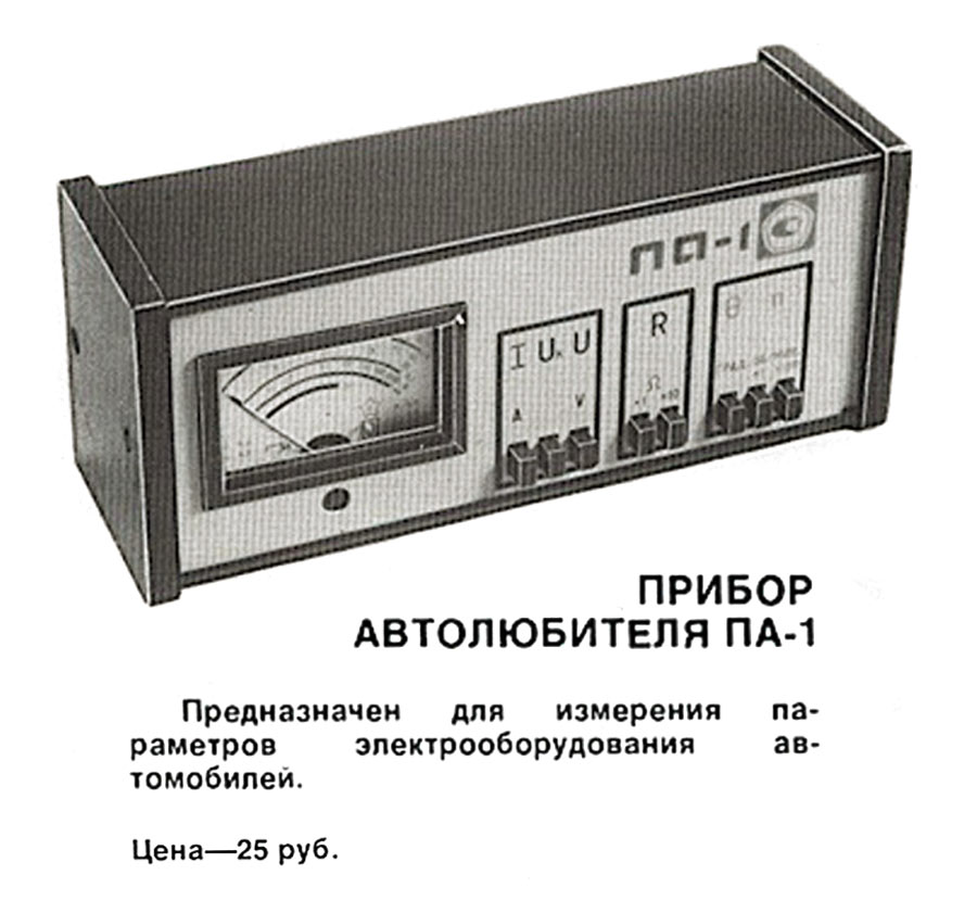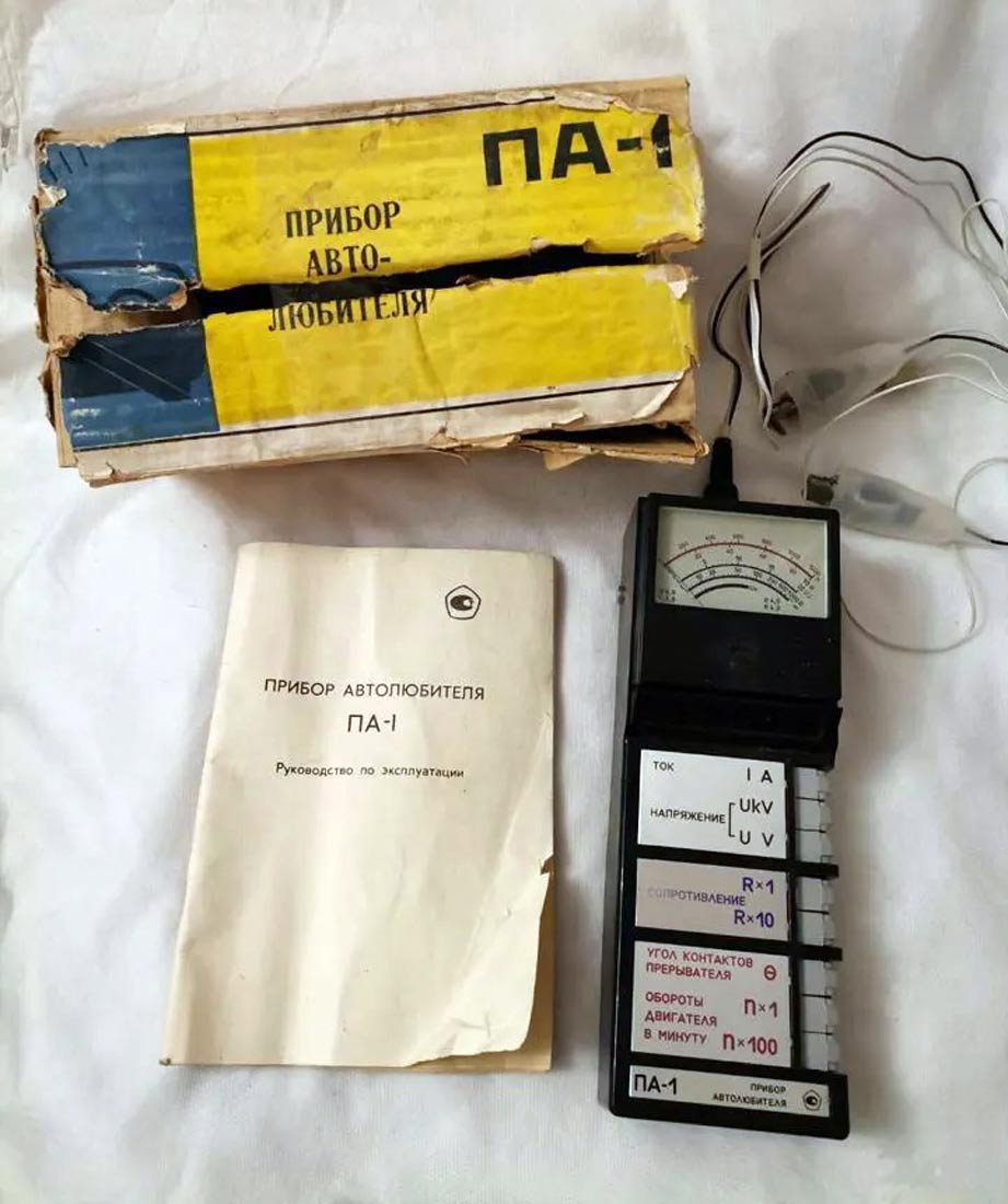 Прибор автолюбителя "ПА-1" с 1981 года выпускал а/я-220, города Выборга. Первое оформление слева. Предназначен для проверки электрического оборудования в автомобилях "Волга", "Жигули" или "Москвич".