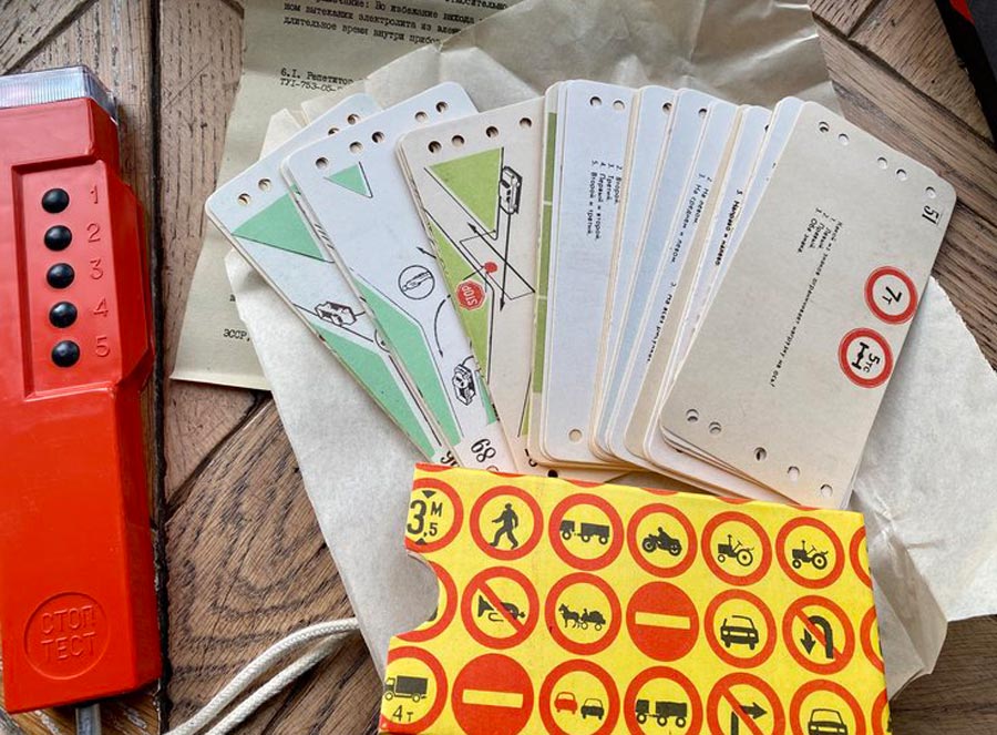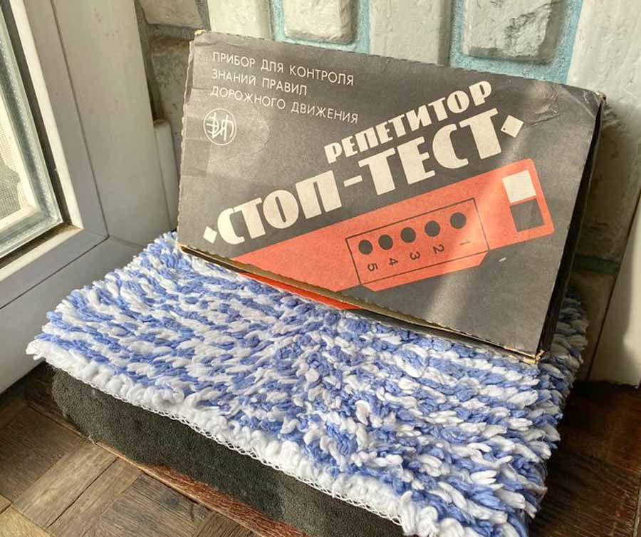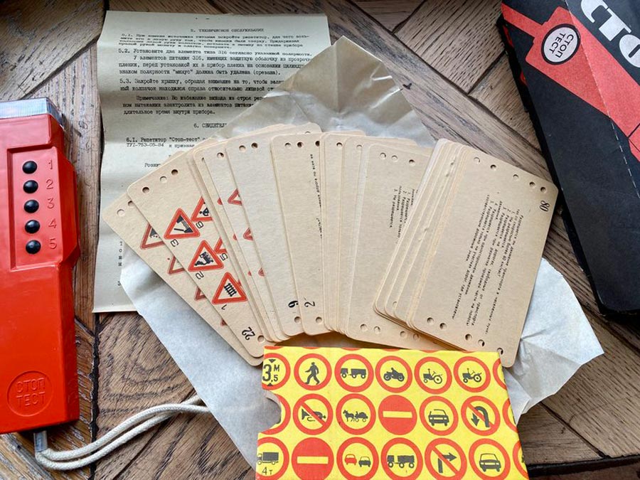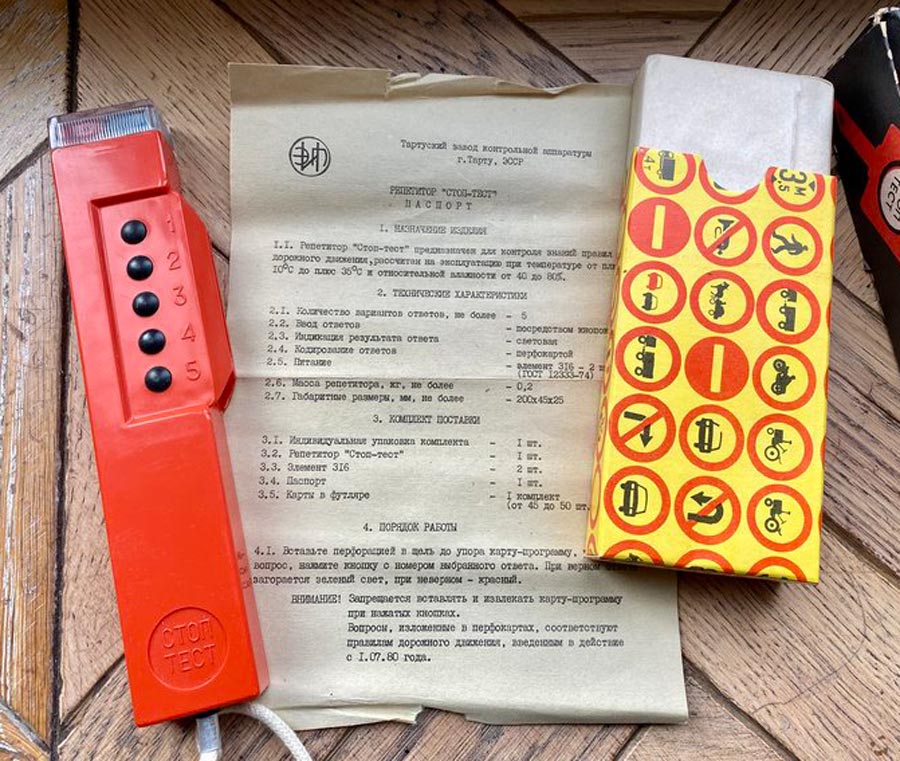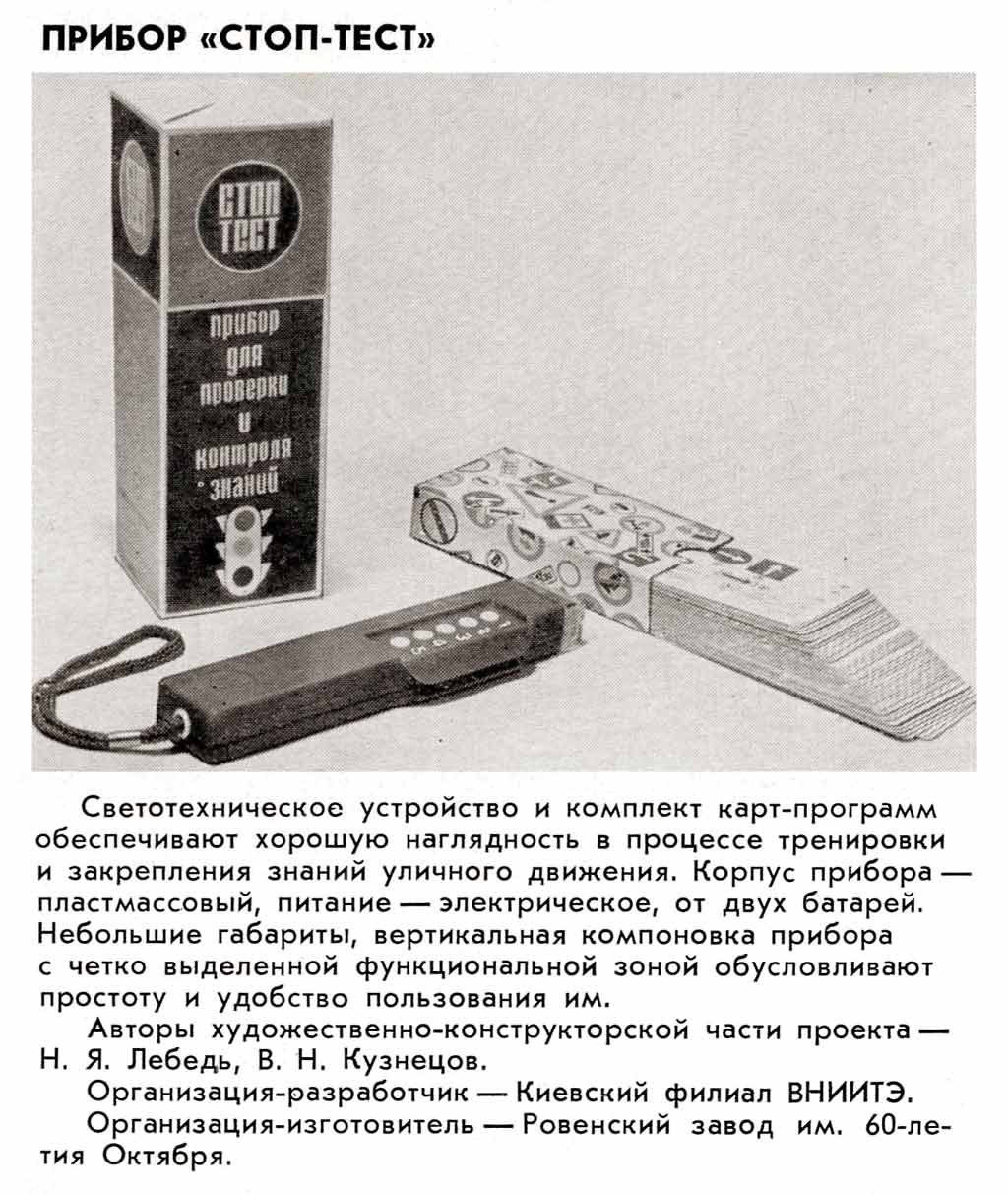 Репетитор "Стоп-тест" выпускался возможно с 1995 года Ровенским заводом 60-летия Октября и Тартуским заводом измерительной аппаратуры. Предназначен для контроля знаний ПДД.