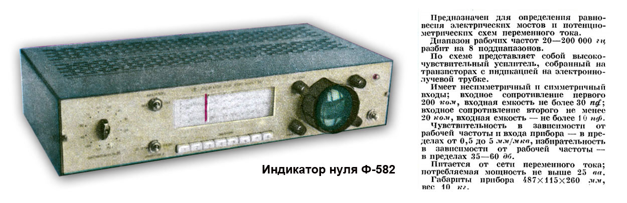 Индикатор нуля "Ф-582" (Нульиндикатор) выпускали возможно с 1968 года радиотехнической промышленностью СССР. Информация в рекламе.