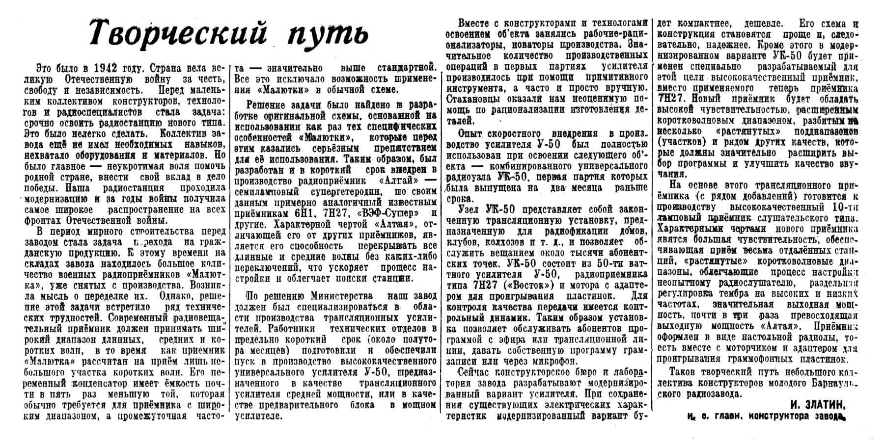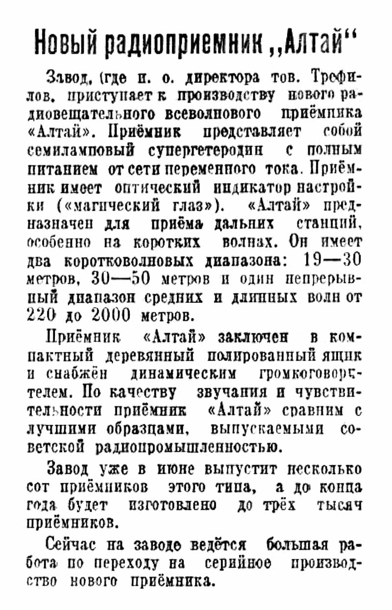 о приёмнике из музея Барнаульского радиозавода. Вырезки
