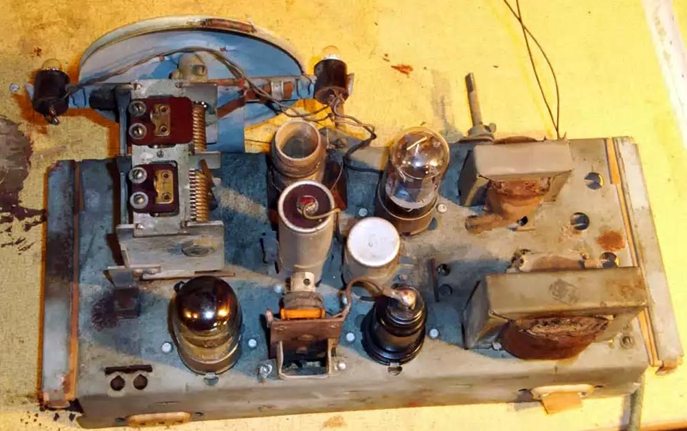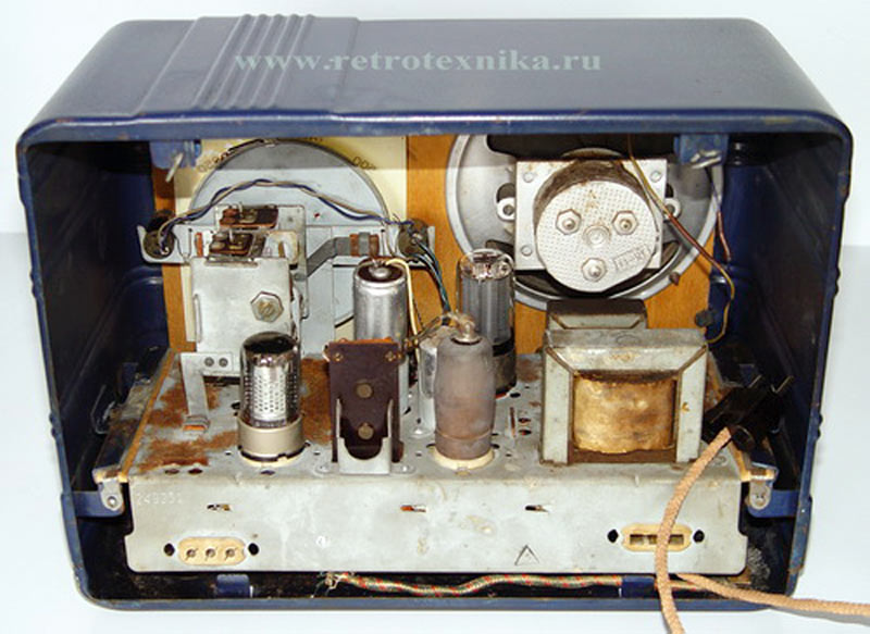 Радиоприёмник собран на лампах 6А7 (6А10С), 6Б8С и 30П1С. Корпус выполнен