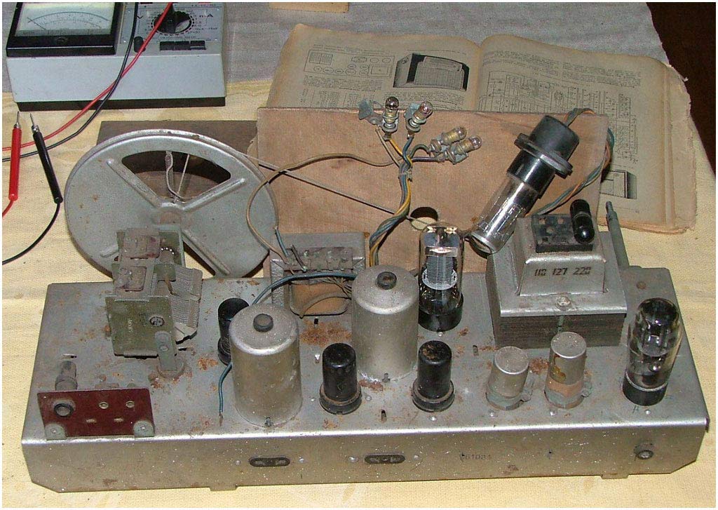 6А7, 6К3, 6Г2, 6П3С, 6Е5С, 5Ц4С. Диапазоны частот: ДВ 150...425 кГц, СВ