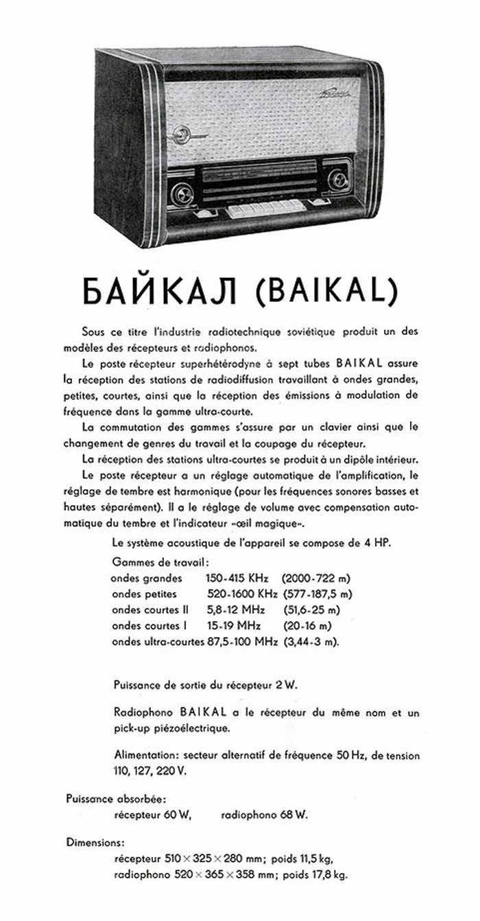завод выпускал и радиолу ''Байкал''. Конструкция радиолы, кроме установленного