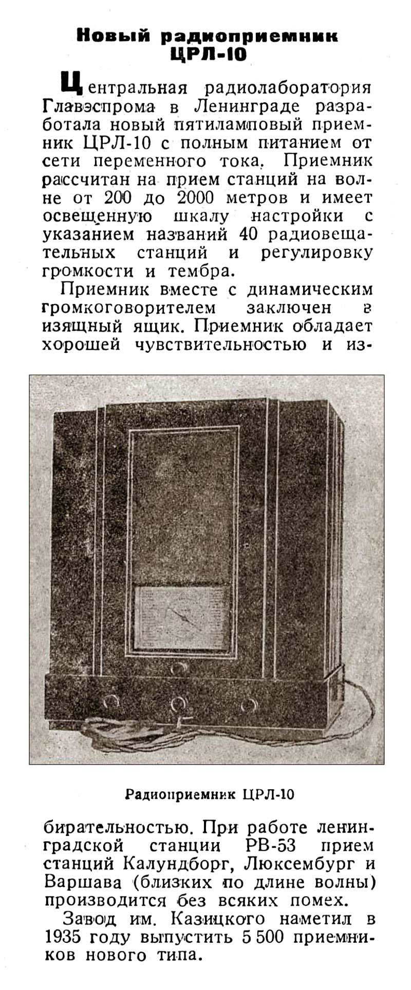 сетевой ламповый "ЦРЛ-10" и "ЦРЛ-10К" с 1935 и 1936 года выпускал Ленинградский