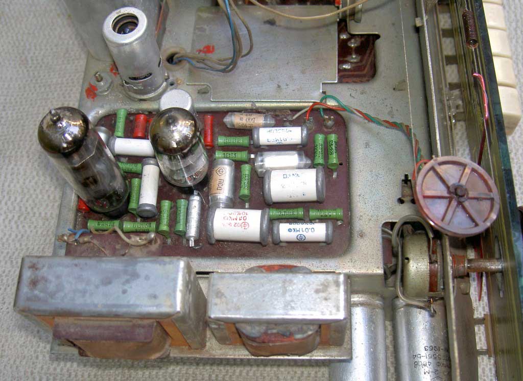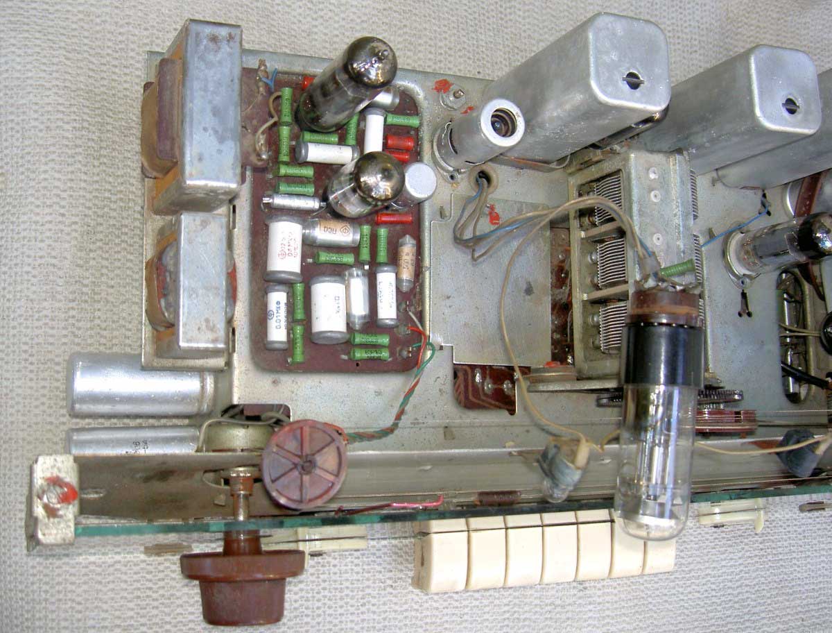для магнитофона. В приёмнике применено 7 радиоламп, 2 диода и селеновый