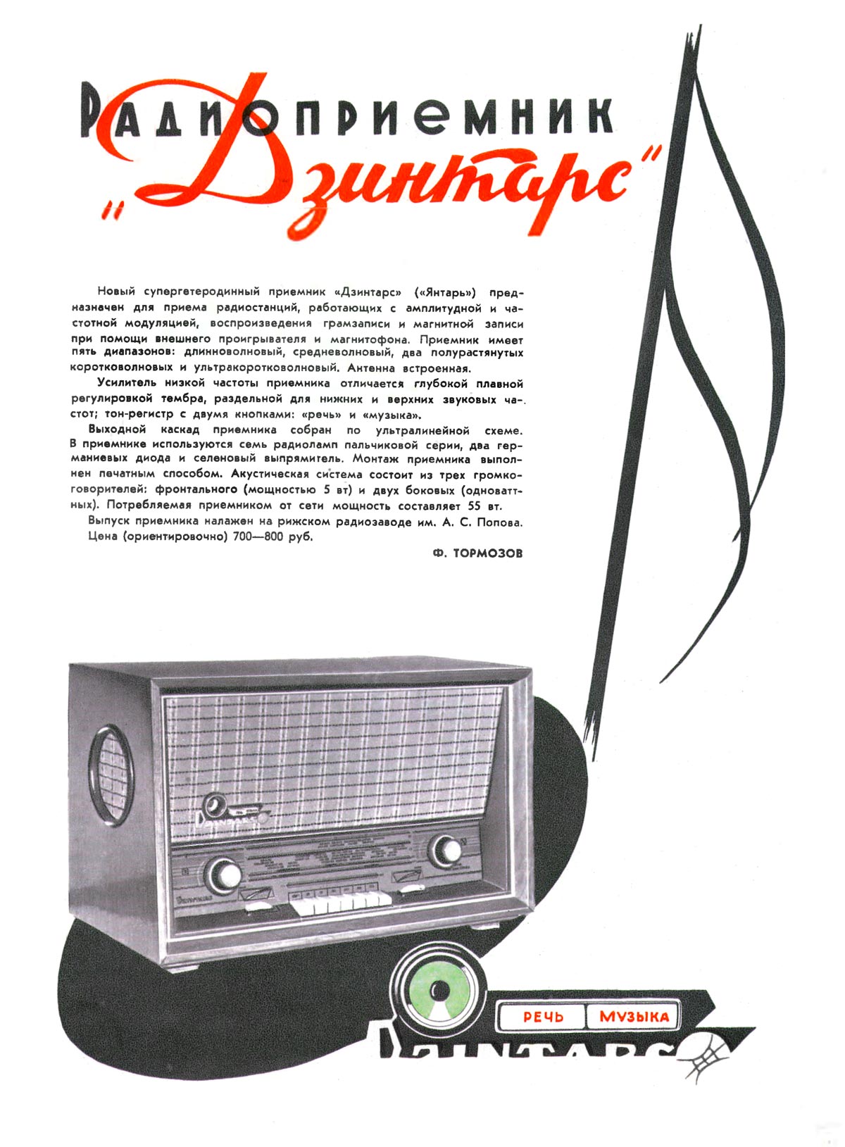 сетевой ламповый "Дзинтарс" с начала 1960 года выпускал Рижский завод имени